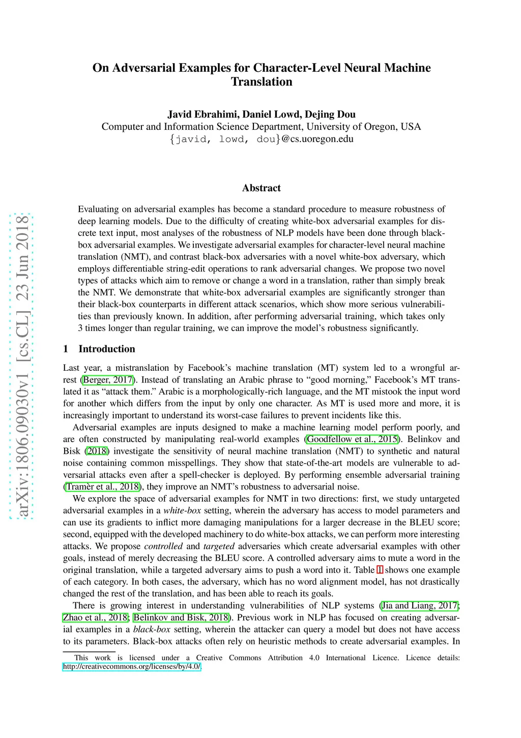 On Adversarial Examples for Character-Level Neural Machine Translation