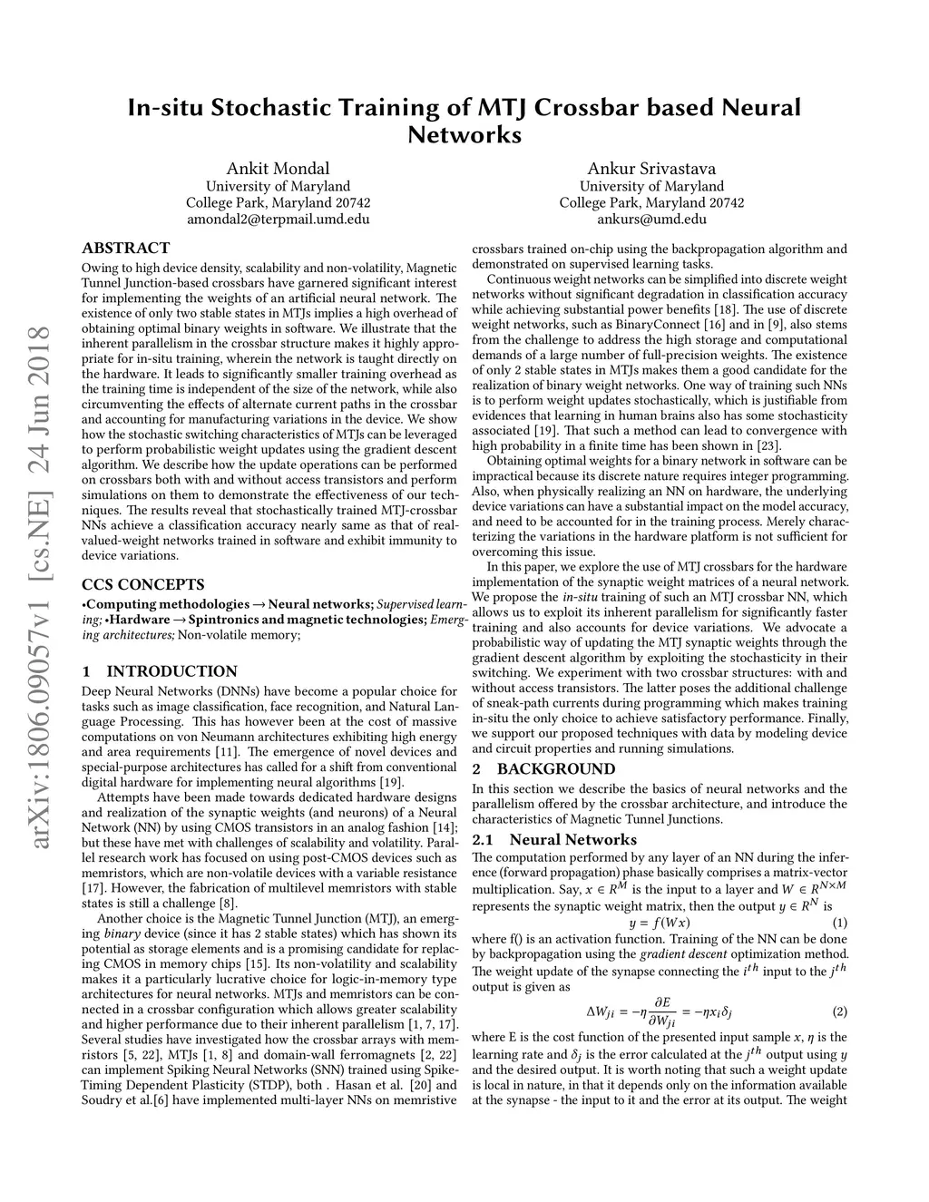 In-situ Stochastic Training of MTJ Crossbar based Neural Networks