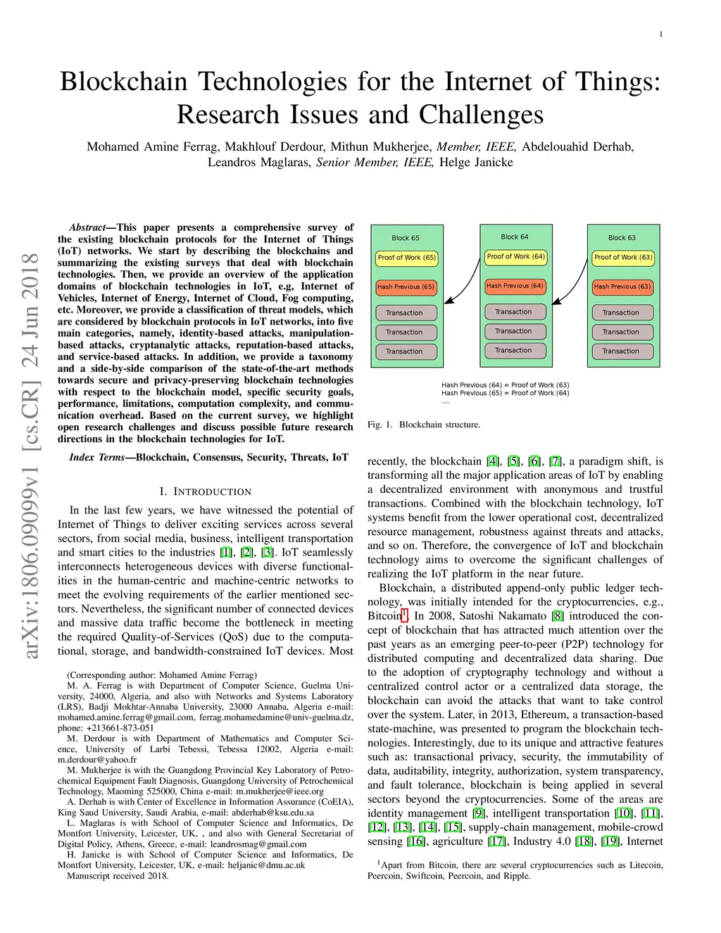 This paper presents a comprehensive survey of the existing blockchain protocols for the Internet of Things (IoT) networks. We start by describing the blockchains and summarizing the existing surveys that deal with blockchain technologies. Then, we provide an overview of the application domains of blockchain technologies in IoT, e.g, Internet of Vehicles, Internet of Energy, Internet of Cloud, Fog computing, etc. Moreover, we provide a classification of threat models, which are considered by blockchain protocols in IoT networks, into five main categories, namely, identity-based attacks, manipulation-based attacks, cryptanalytic attacks, reputation-based attacks, and service-based attacks. In addition, we provide a taxonomy and a side-by-side comparison of the state-of-the-art methods towards secure and privacy-preserving blockchain technologies with respect to the blockchain model, specific security goals, performance, limitations, computation complexity, and communication overhead. Based on the current survey, we highlight open research challenges and discuss possible future research directions in the blockchain technologies for IoT.