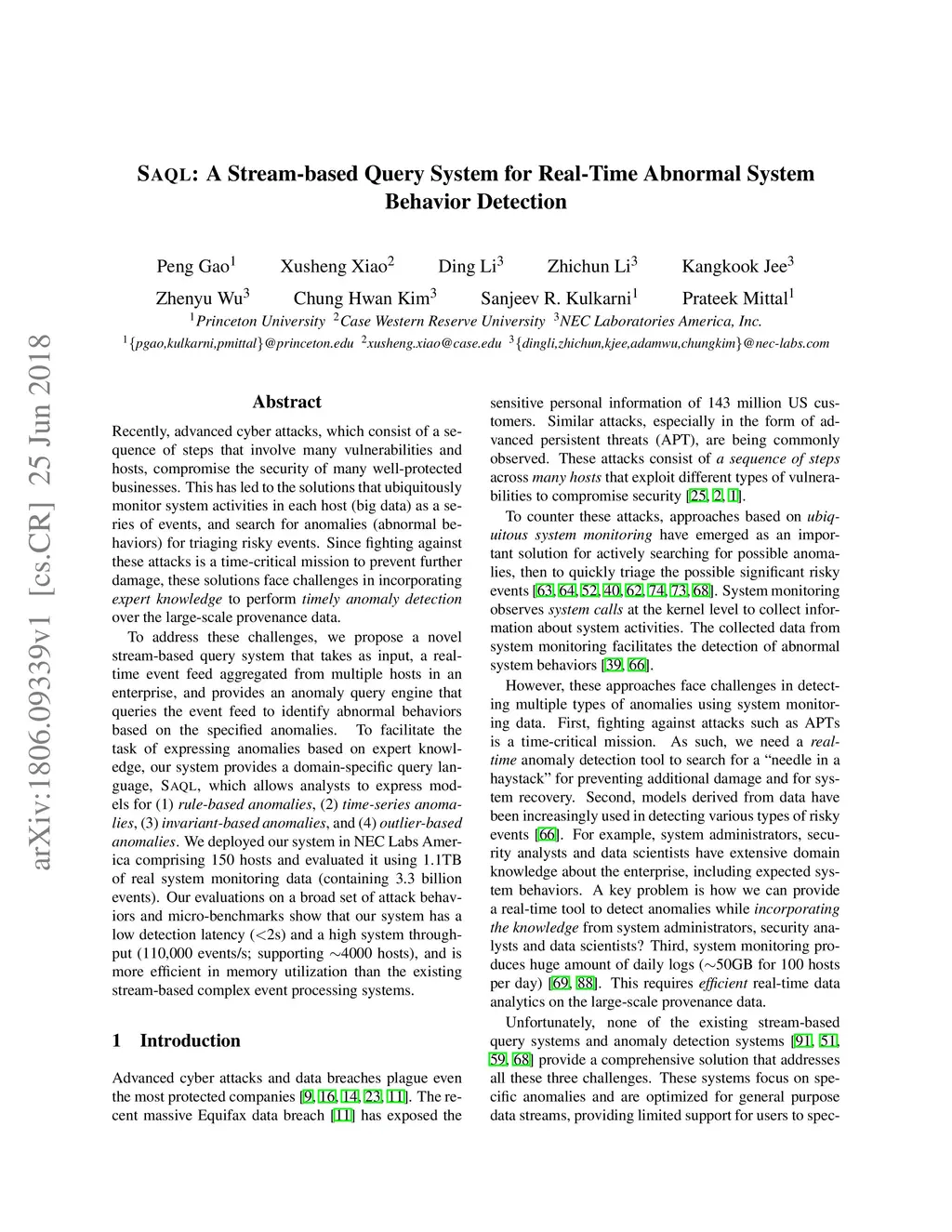SAQL: A Stream-based Query System for Real-Time Abnormal System Behavior