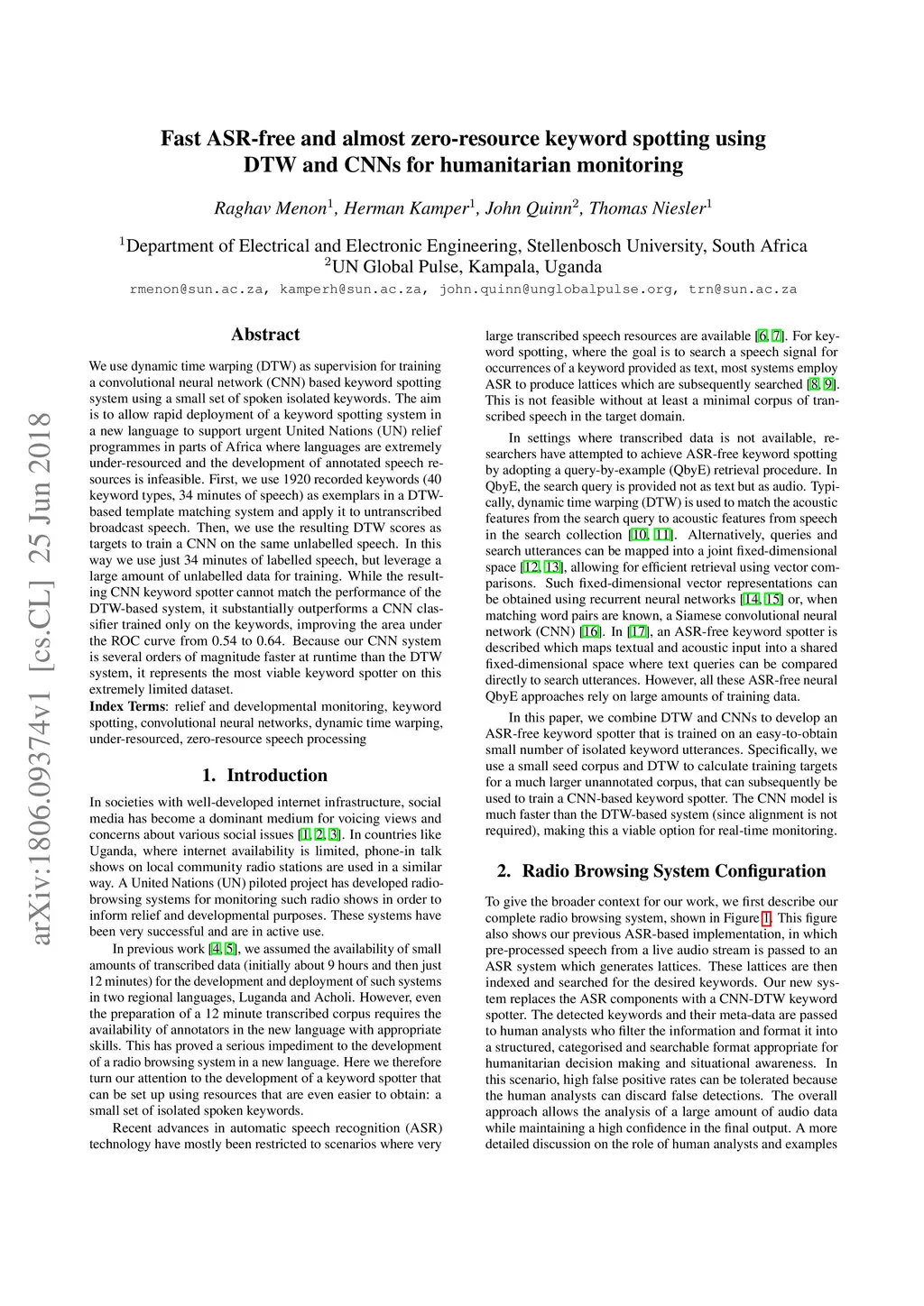 Fast ASR-free and almost zero-resource keyword spotting using DTW and