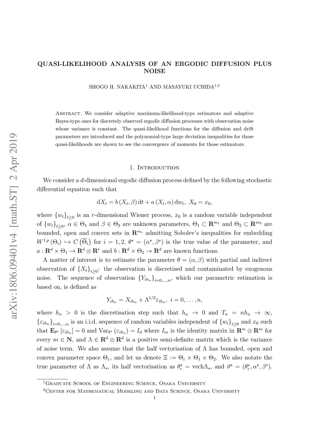 We consider adaptive maximum-likelihood-type estimators and adaptive Bayes-type ones for discretely observed ergodic diffusion processes with observation noise whose variance is constant. The quasi-likelihood functions for the diffusion and drift parameters are introduced and the polynomial-type large deviation inequalities for those quasi-likelihoods are shown to see the convergence of moments for those estimators.