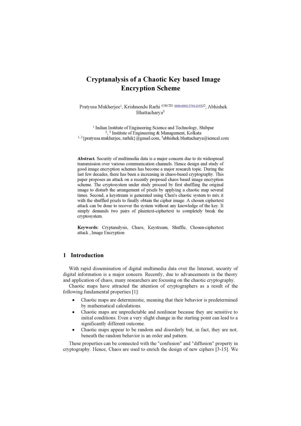 Security of multimedia data is a major concern due to its widespread transmission over various communication channels. Hence design and study of good image encryption schemes has become a major research topic. During the last few decades, there has been a increasing in chaos-based cryptography. This paper proposes an attack on a recently proposed chaos based image encryption scheme. The cryptosystem under study proceed by first shuffling the original image to disturb the arrangement of pixels by applying a chaotic map several times. Second, a keystream is generated using Chen's chaotic system to mix it with the shuffled pixels to finally obtain the cipher image. A chosen ciphertext attack can be done to recover the system without any knowledge of the key. It simply demands two pairs of plaintext-ciphertext to completely break the cryptosystem.