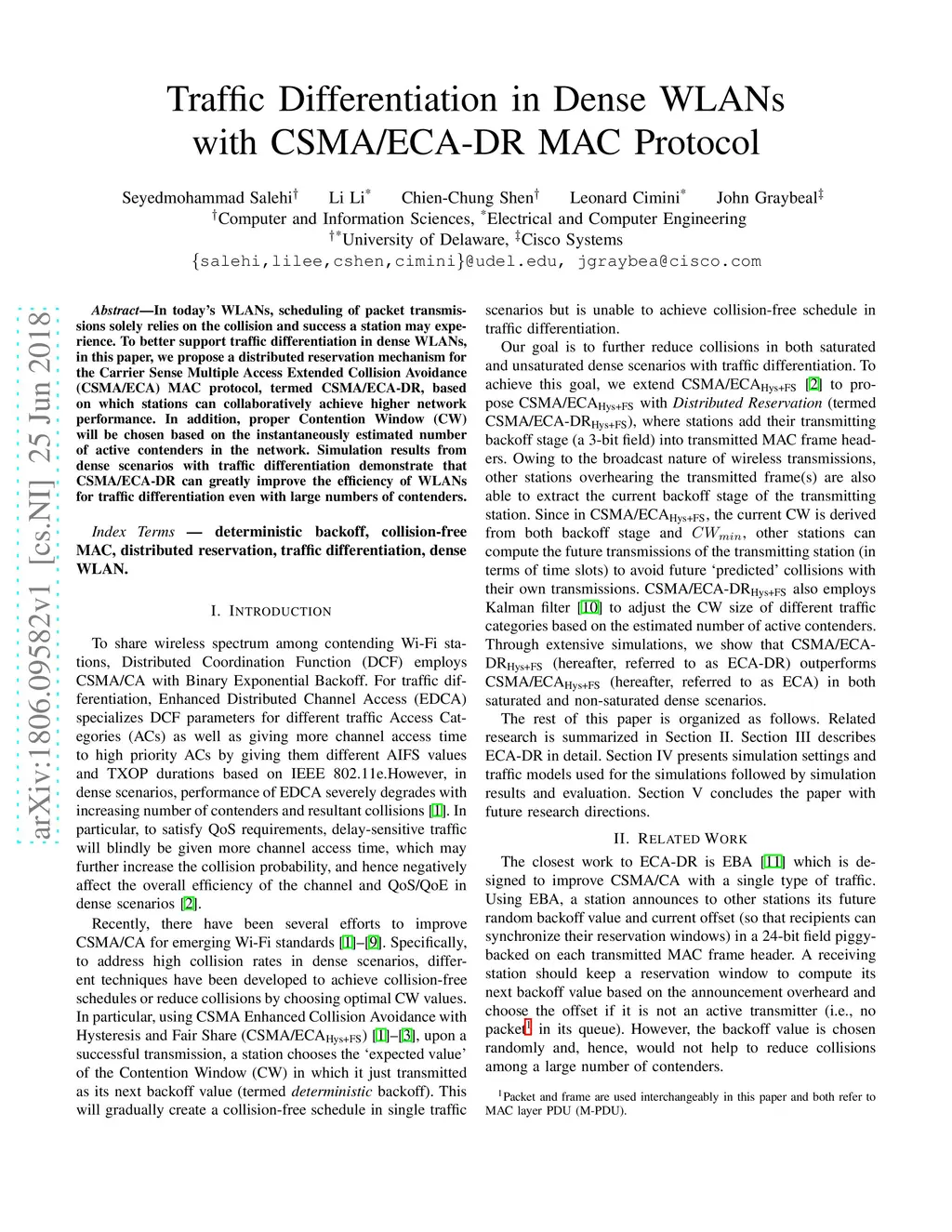 Traffic Differentiation in Dense WLANs with CSMA/ECA-DR MAC Protocol