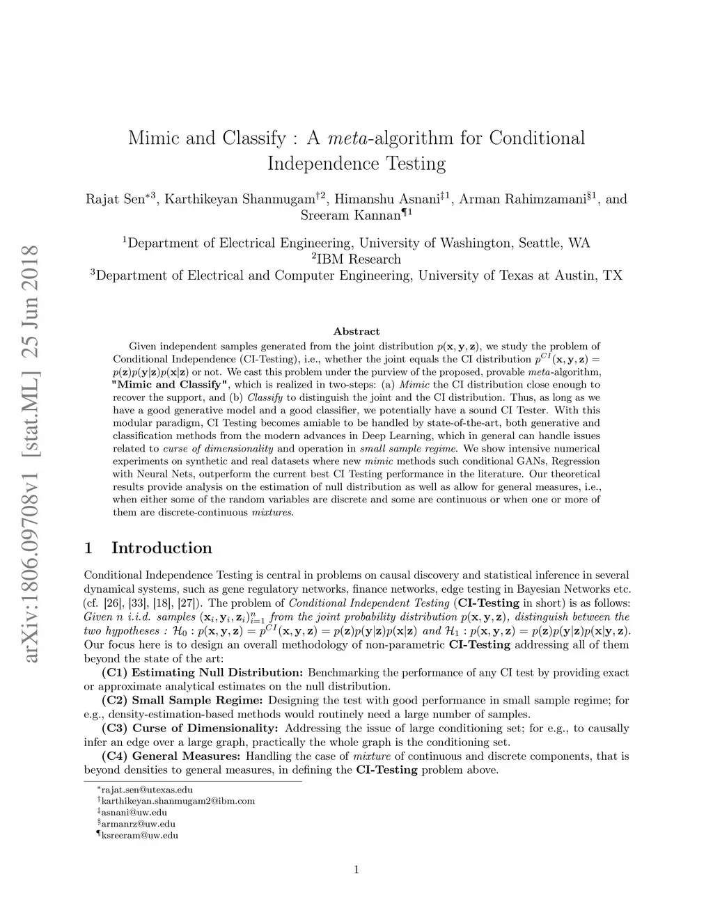 Mimic and Classify : A meta-algorithm for Conditional Independence