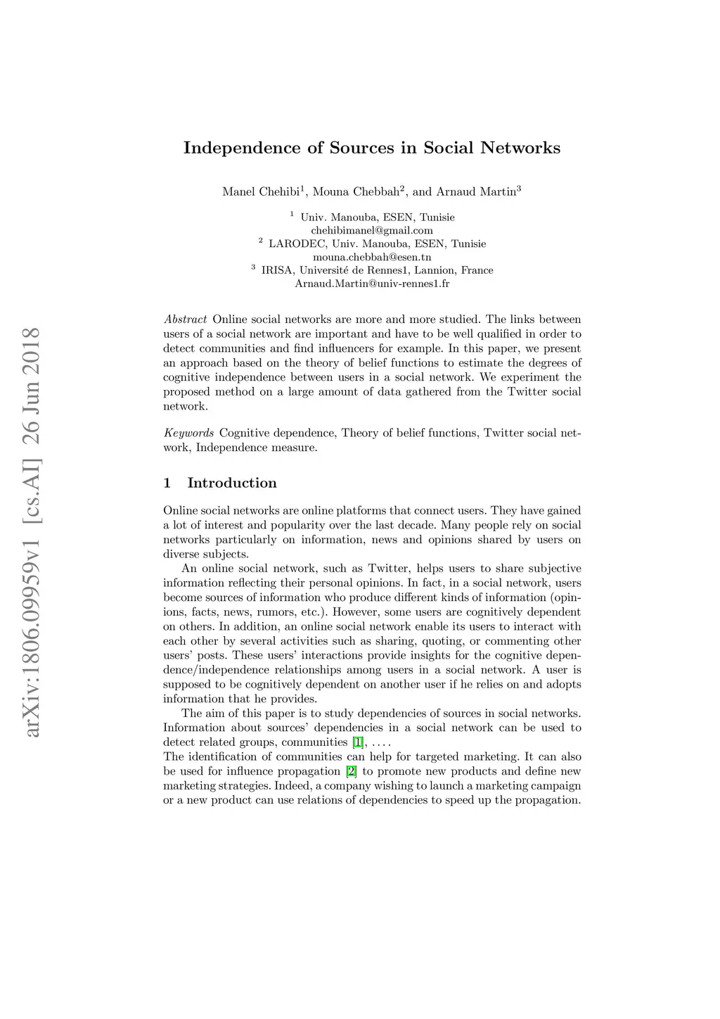 Online social networks are more and more studied. The links between users of a social network are important and have to be well qualified in order to detect communities and find influencers for example. In this paper, we present an approach based on the theory of belief functions to estimate the degrees of cognitive independence between users in a social network. We experiment the proposed method on a large amount of data gathered from the Twitter social network.