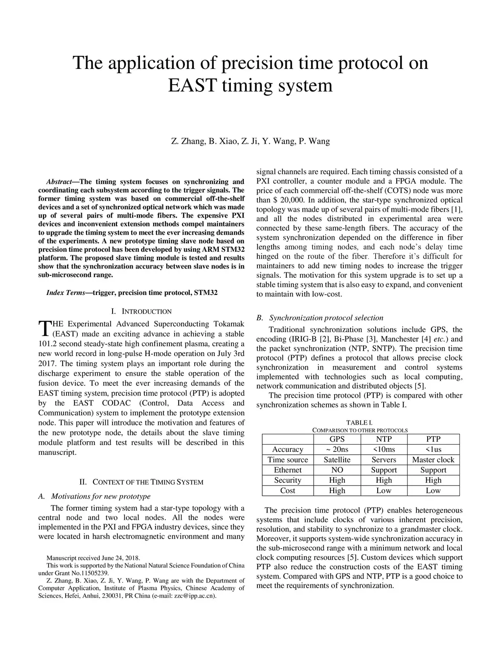 The timing system focuses on synchronizing and coordinating each subsystem according to the trigger signals. A new prototype timing slave node based on precision time protocol has been developed by using ARM STM32 platform. The proposed slave timing module is tested and results show that the synchronization accuracy between slave nodes is in sub-microsecond range.