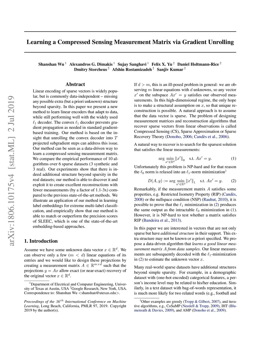 Learning a Compressed Sensing Measurement Matrix via Gradient Unrolling