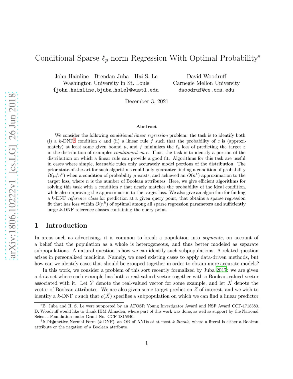 We consider the following conditional linear regression problem: the task is to identify both (i) a -DNF condition and (ii) a linear rule such that the probability of is (approximately) at least some given bound , and minimizes the loss of predicting the target in the distribution of examples conditioned on . Thus, the task is to identify a portion of the distribution on which a linear rule can provide a good fit. Algorithms for this task are useful in cases where simple, learnable rules only accurately model portions of the distribution. The prior state-of-the-art for such algorithms could only guarantee finding a condition of probability when a condition of probability exists, and achieved an -approximation to the target loss, where is the number of Boolean attributes. Here, we give efficient algorithms for solving this task with a condition that nearly matches the probability of the ideal condition, while also improving the approximation to the target loss. We also give an algorithm for finding a -DNF reference class for prediction at a given query point, that obtains a sparse regression fit that has loss within of optimal among all sparse regression parameters and sufficiently large -DNF reference classes containing the query point.