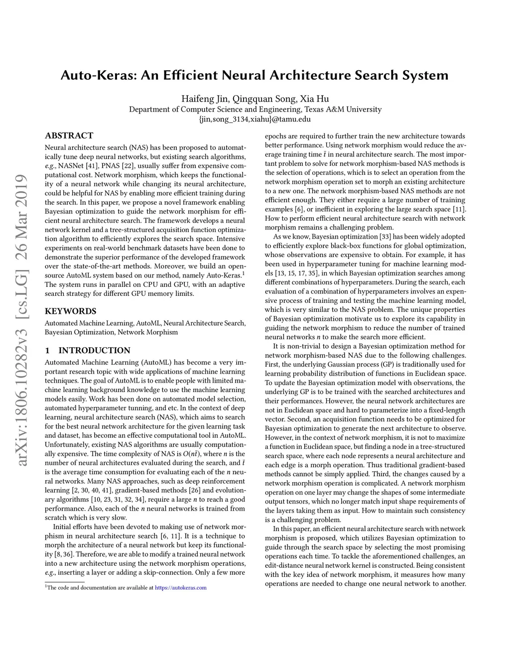 Auto-Keras: An Efficient Neural Architecture Search System