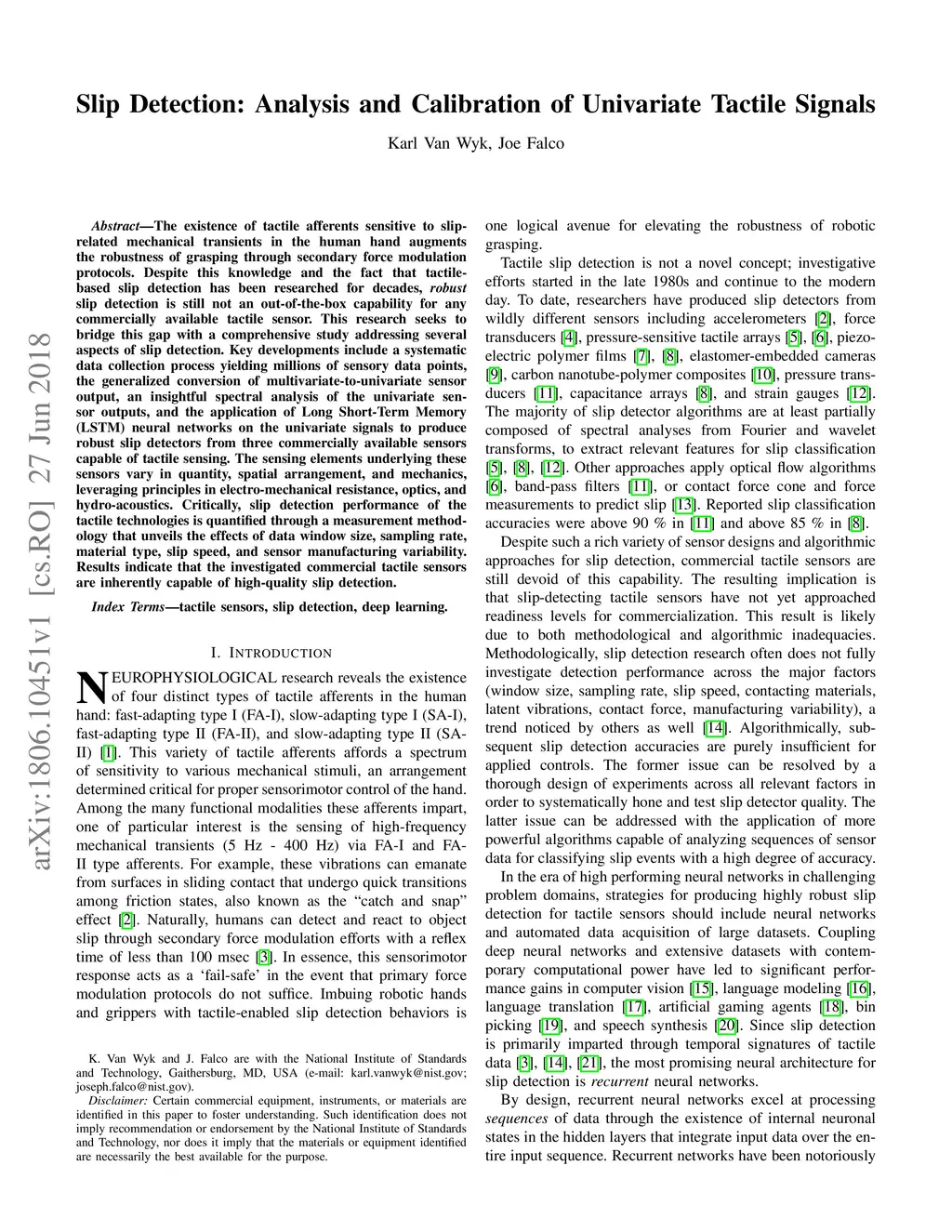 The existence of tactile afferents sensitive to slip-related mechanical transients in the human hand augments the robustness of grasping through secondary force modulation protocols. Despite this knowledge and the fact that tactile-based slip detection has been researched for decades, robust slip detection is still not an out-of-the-box capability for any commercially available tactile sensor. This research seeks to bridge this gap with a comprehensive study addressing several aspects of slip detection. Key developments include a systematic data collection process yielding millions of sensory data points, the generalized conversion of multivariate-to-univariate sensor output, an insightful spectral analysis of the univariate sensor outputs, and the application of Long Short-Term Memory (LSTM) neural networks on the univariate signals to produce robust slip detectors from three commercially available sensors capable of tactile sensing. The sensing elements underlying these sensors vary in quantity, spatial arrangement, and mechanics, leveraging principles in electro-mechanical resistance, optics, and hydro-acoustics. Critically, slip detection performance of the tactile technologies is quantified through a measurement methodology that unveils the effects of data window size, sampling rate, material type, slip speed, and sensor manufacturing variability. Results indicate that the investigated commercial tactile sensors are inherently capable of high-quality slip detection.