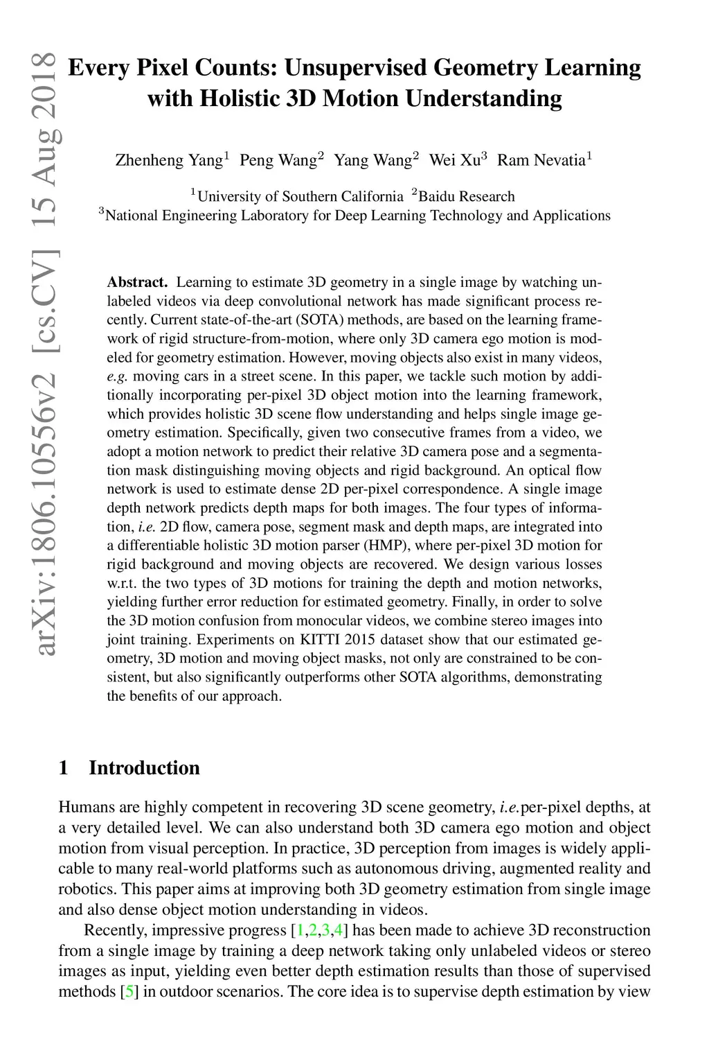 Every Pixel Counts: Unsupervised Geometry Learning with Holistic 3D