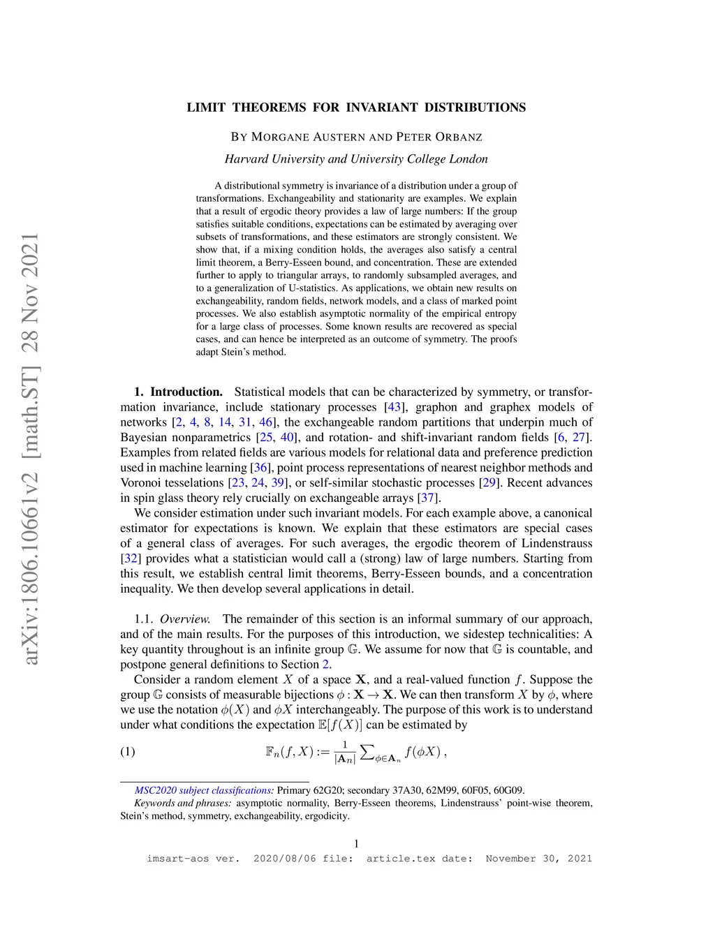 A distributional symmetry is invariance of a distribution under a group of transformations. Exchangeability and stationarity are examples. We explain that a result of ergodic theory provides a law of large numbers: If the group satisfies suitable conditions, expectations can be estimated by averaging over subsets of transformations, and these estimators are strongly consistent. We show that, if a mixing condition holds, the averages also satisfy a central limit theorem, a Berry-Esseen bound, and concentration. These are extended further to apply to triangular arrays, to randomly subsampled averages, and to a generalization of U-statistics. As applications, we obtain new results on exchangeability, random fields, network models, and a class of marked point processes. We also establish asymptotic normality of the empirical entropy for a large class of processes. Some known results are recovered as special cases, and can hence be interpreted as an outcome of symmetry. The proofs adapt Stein's method.