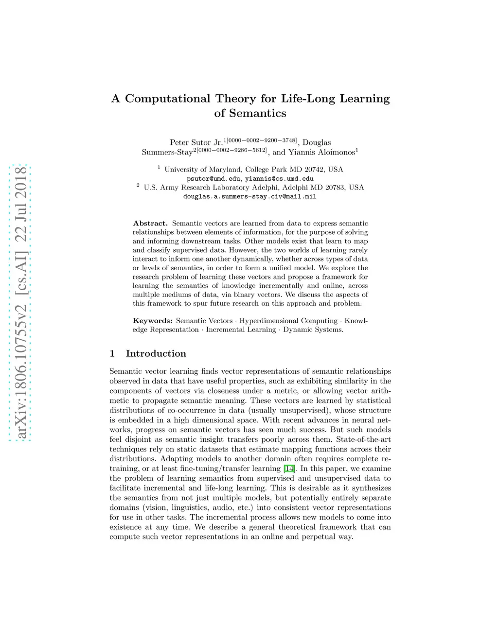A Computational Theory for Life-Long Learning of Semantics