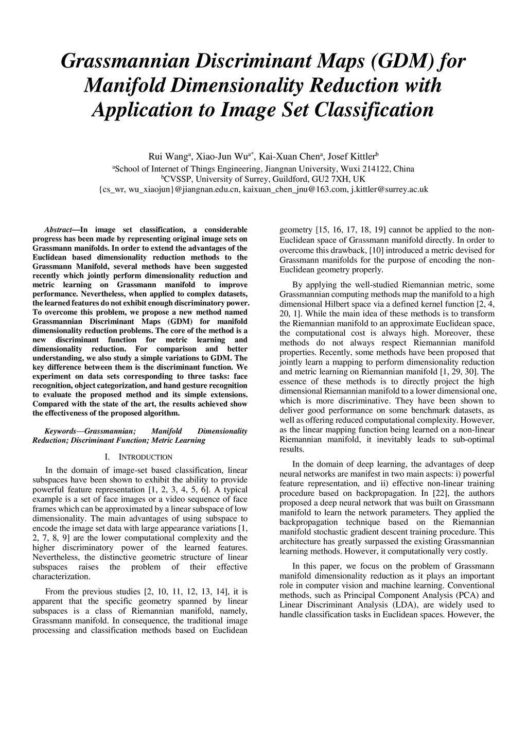 In image set classification, a considerable progress has been made by representing original image sets on Grassmann manifolds. In order to extend the advantages of the Euclidean based dimensionality reduction methods to the Grassmann Manifold, several methods have been suggested recently which jointly perform dimensionality reduction and metric learning on Grassmann manifold to improve performance. Nevertheless, when applied to complex datasets, the learned features do not exhibit enough discriminatory power. To overcome this problem, we propose a new method named Grassmannian Discriminant Maps (GDM) for manifold dimensionality reduction problems. The core of the method is a new discriminant function for metric learning and dimensionality reduction. For comparison and better understanding, we also study a simple variations to GDM. The key difference between them is the discriminant function. We experiment on data sets corresponding to three tasks: face recognition, object categorization, and hand gesture recognition to evaluate the proposed method and its simple extensions. Compared with the state of the art, the results achieved show the effectiveness of the proposed algorithm.