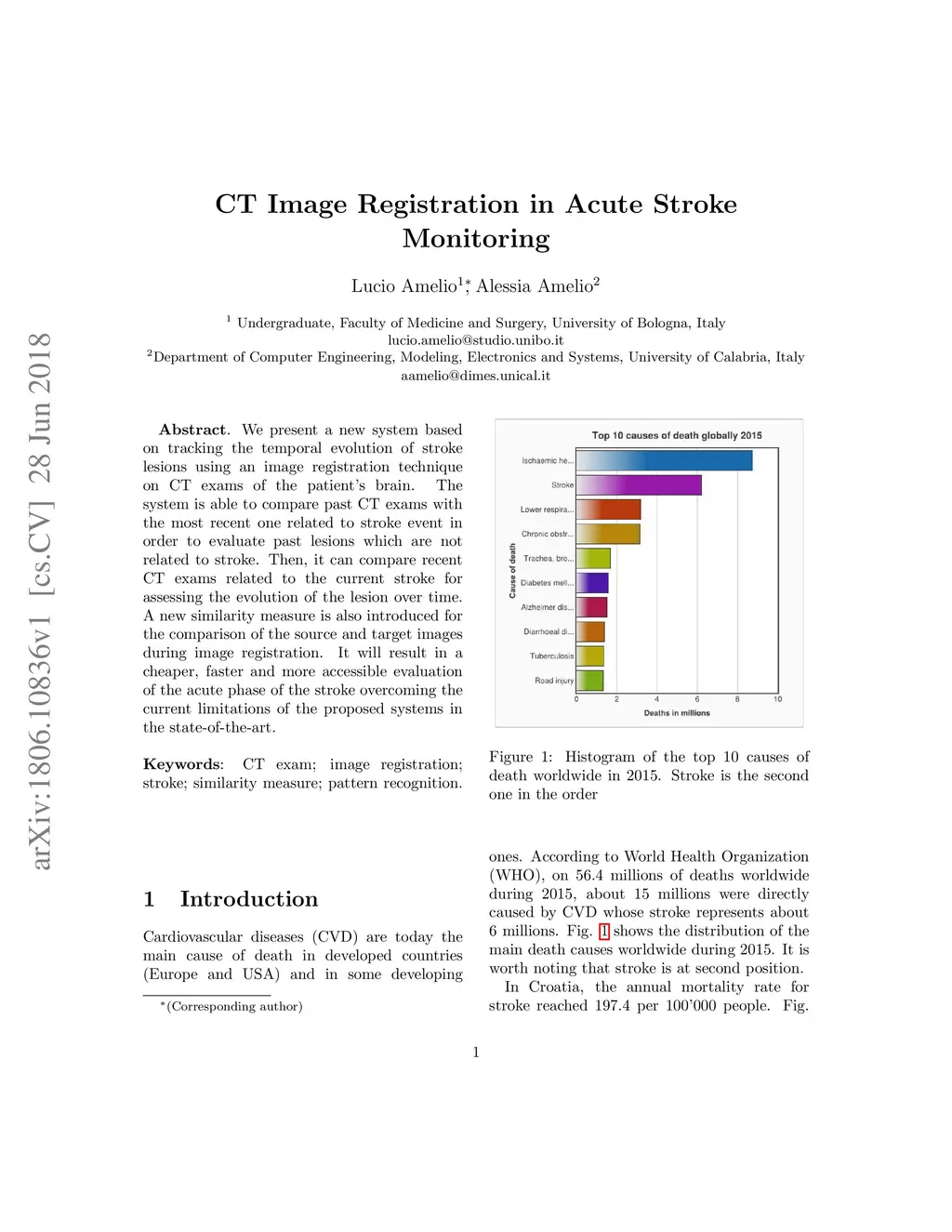 We present a new system based on tracking the temporal evolution of stroke lesions using an image registration technique on CT exams of the patient's brain. The system is able to compare past CT exams with the most recent one related to stroke event in order to evaluate past lesions which are not related to stroke. Then, it can compare recent CT exams related to the current stroke for assessing the evolution of the lesion over time. A new similarity measure is also introduced for the comparison of the source and target images during image registration. It will result in a cheaper, faster and more accessible evaluation of the acute phase of the stroke overcoming the current limitations of the proposed systems in the state-of-the-art.