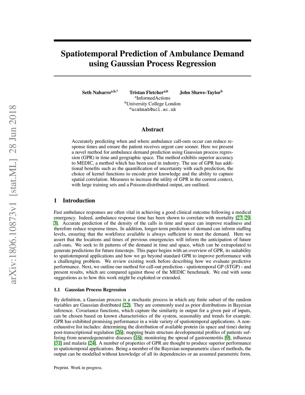 Spatiotemporal Prediction of Ambulance Demand using Gaussian Process