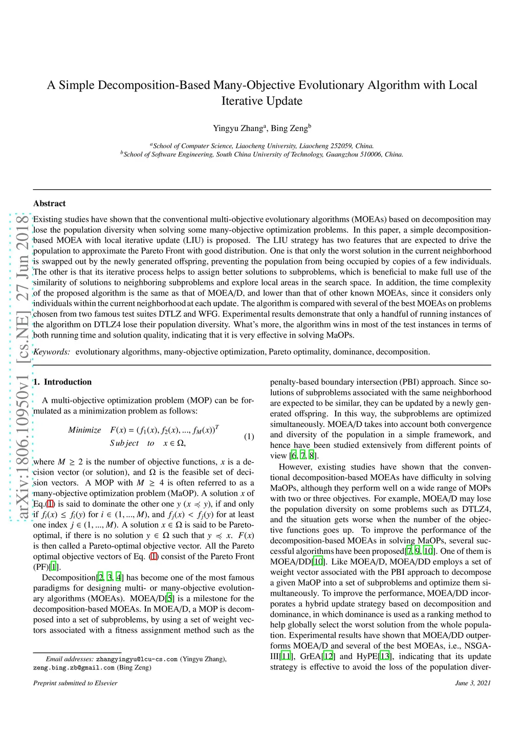 A Decomposition-Based Many-Objective Evolutionary Algorithm with Local