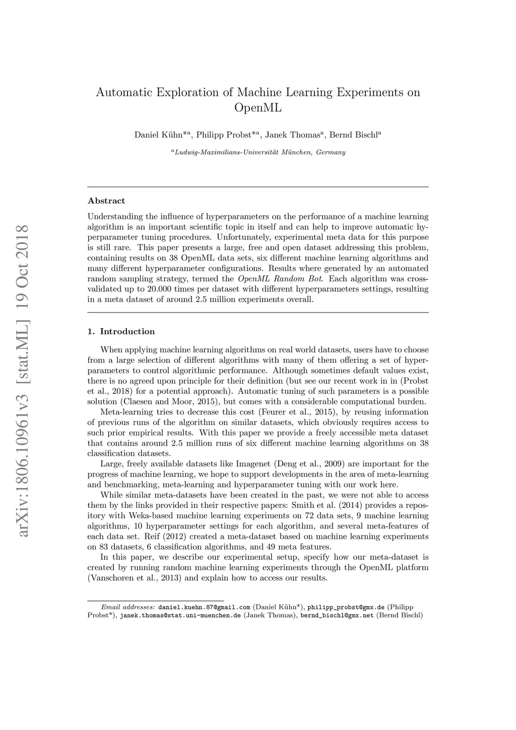 Automatic Exploration of Machine Learning Experiments on OpenML