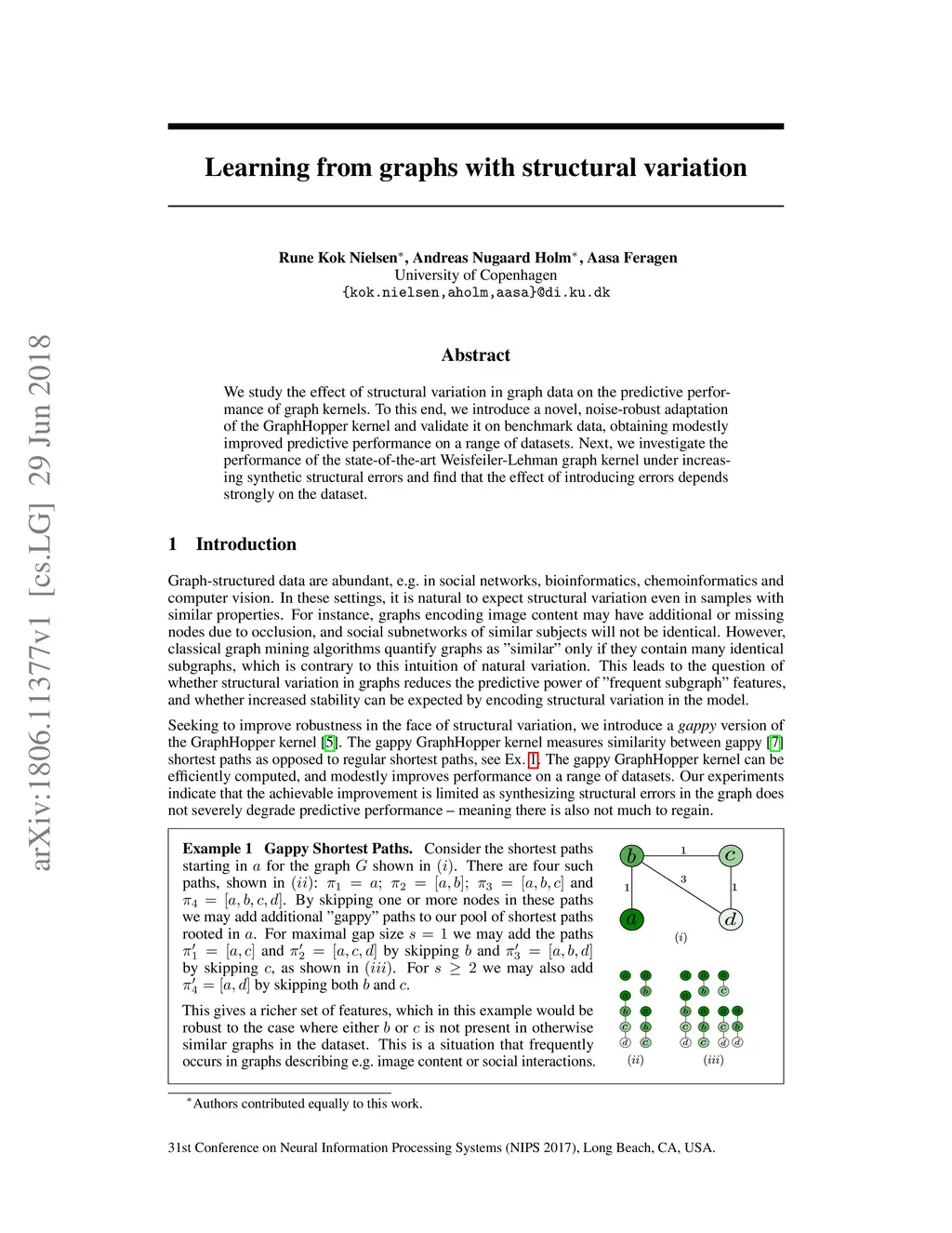 We study the effect of structural variation in graph data on the predictive performance of graph kernels. To this end, we introduce a novel, noise-robust adaptation of the GraphHopper kernel and validate it on benchmark data, obtaining modestly improved predictive performance on a range of datasets. Next, we investigate the performance of the state-of-the-art Weisfeiler-Lehman graph kernel under increasing synthetic structural errors and find that the effect of introducing errors depends strongly on the dataset.