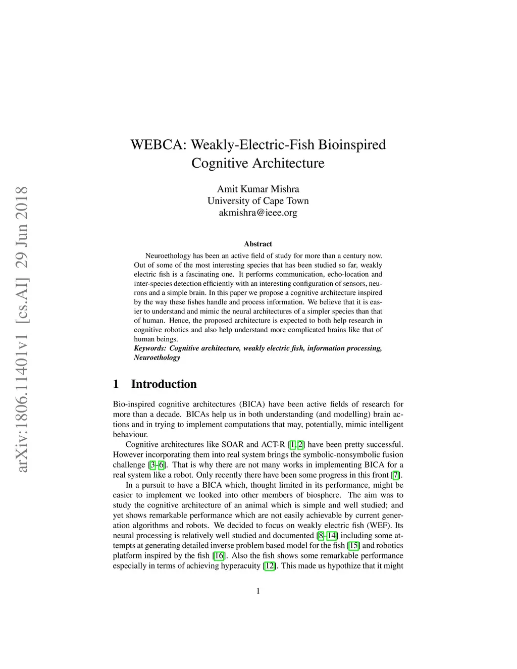 WEBCA: Weakly-Electric-Fish Bioinspired Cognitive Architecture