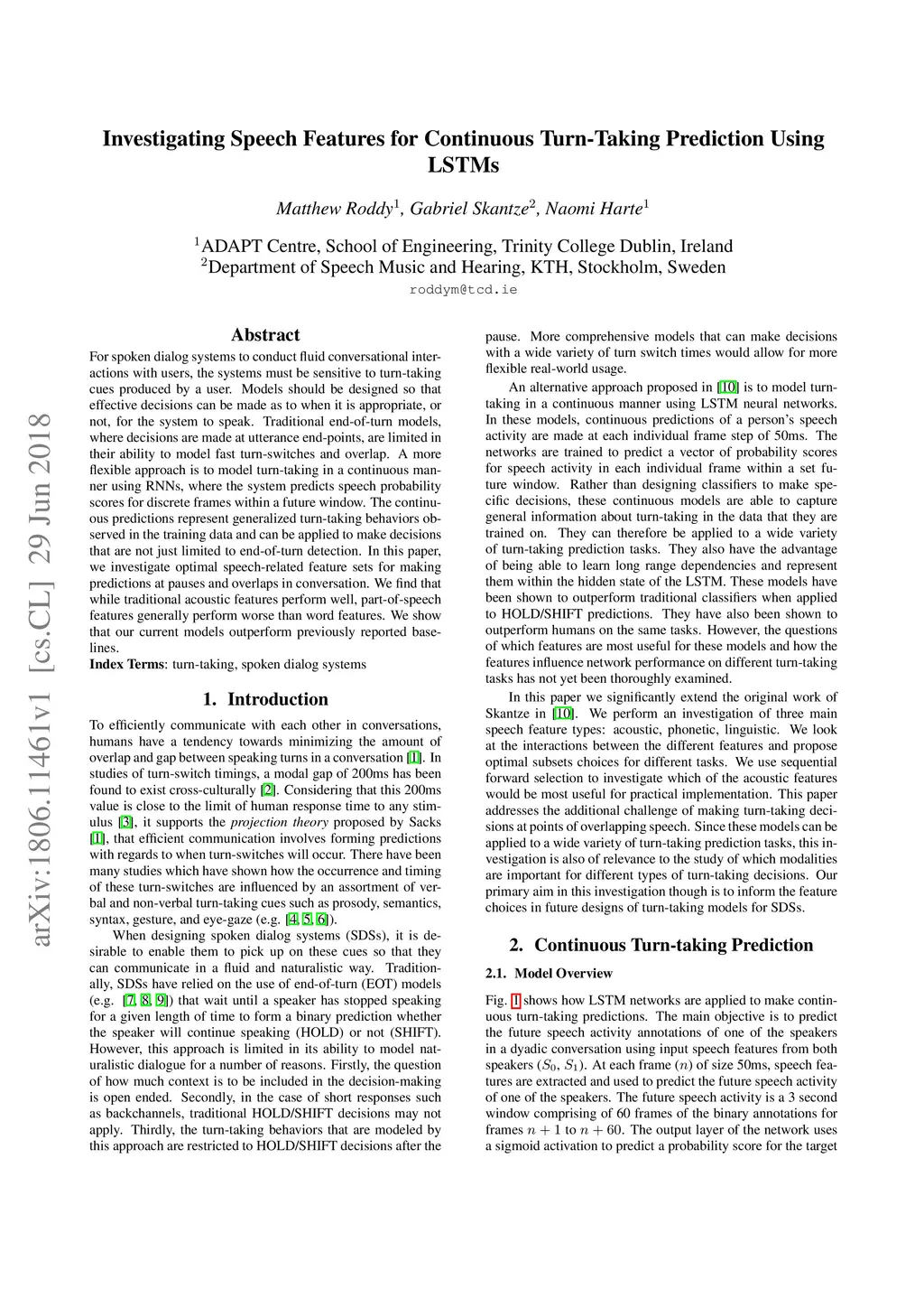 Investigating Speech Features for Continuous Turn-Taking Prediction
