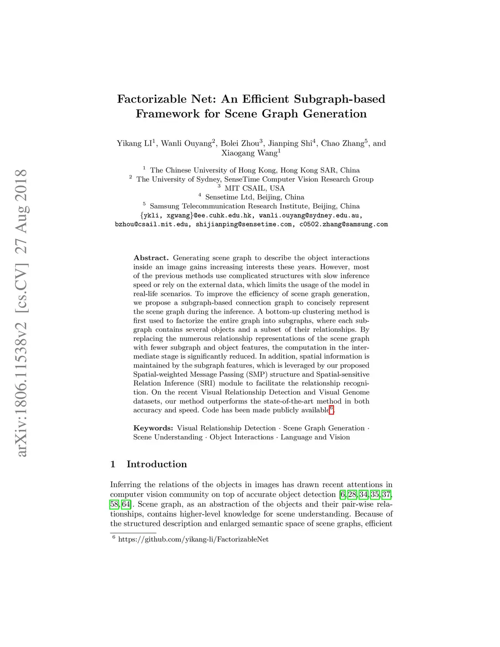 Factorizable Net: An Efficient Subgraph-based Framework for Scene Graph