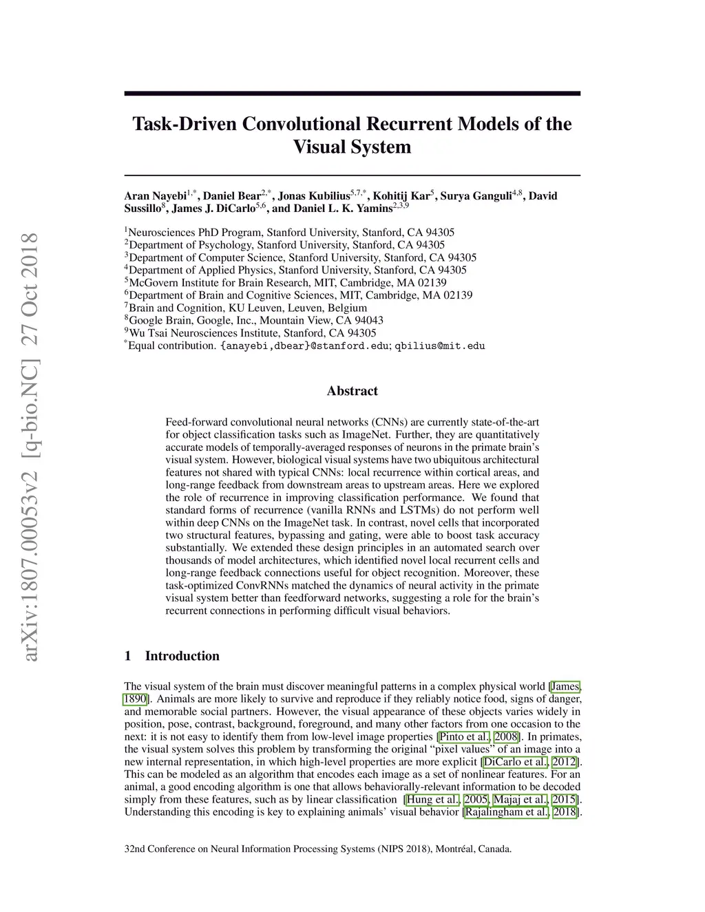 Task-Driven Convolutional Recurrent Models of the Visual System