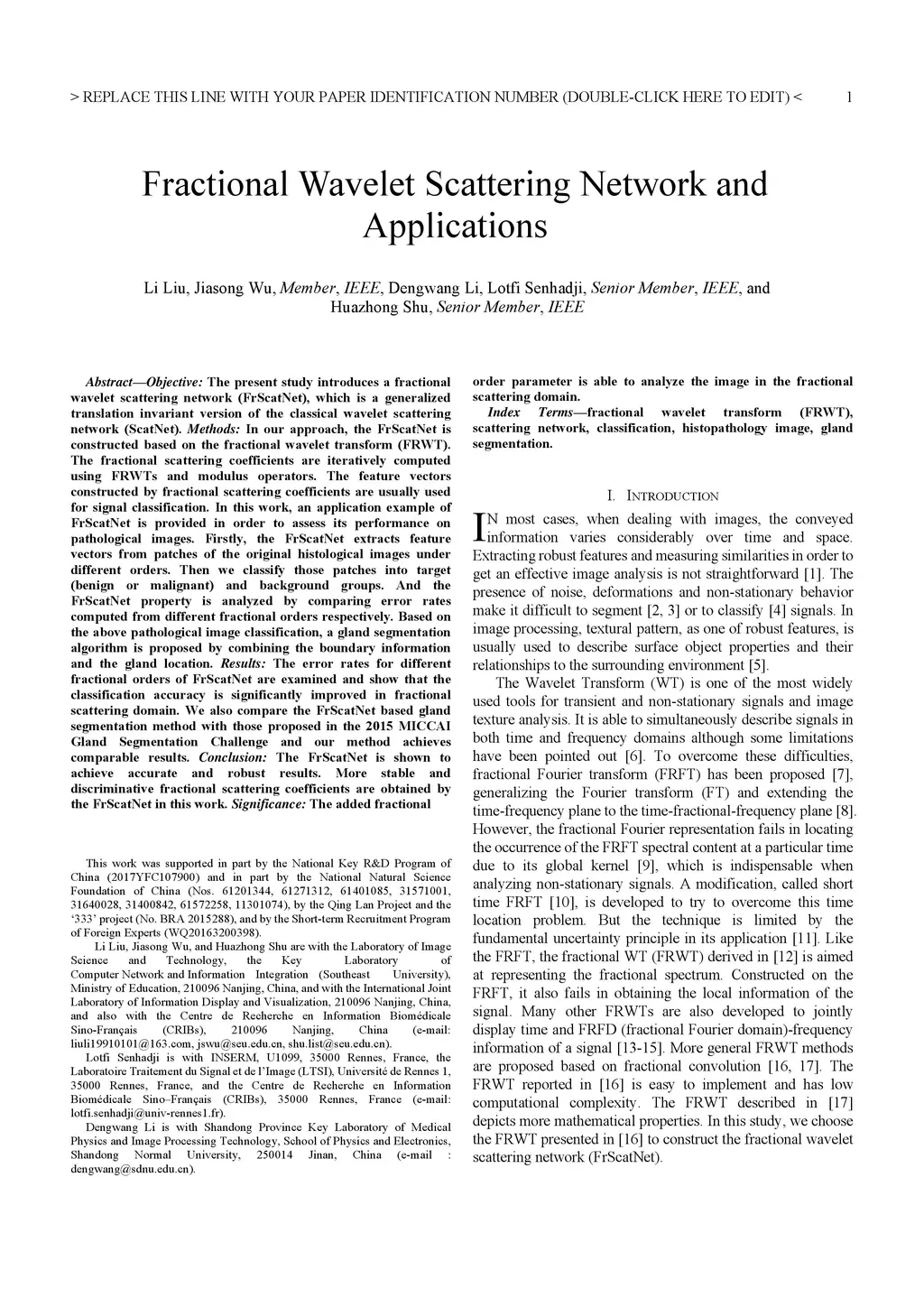 Objective: The present study introduces a fractional wavelet scattering network (FrScatNet), which is a generalized translation invariant version of the classical wavelet scattering network (ScatNet). Methods: In our approach, the FrScatNet is constructed based on the fractional wavelet transform (FRWT). The fractional scattering coefficients are iteratively computed using FRWTs and modulus operators. The feature vectors constructed by fractional scattering coefficients are usually used for signal classification. In this work, an application example of FrScatNet is provided in order to assess its performance on pathological images. Firstly, the FrScatNet extracts feature vectors from patches of the original histological images under different orders. Then we classify those patches into target (benign or malignant) and background groups. And the FrScatNet property is analyzed by comparing error rates computed from different fractional orders respectively. Based on the above pathological image classification, a gland segmentation algorithm is proposed by combining the boundary information and the gland location. Results: The error rates for different fractional orders of FrScatNet are examined and show that the classification accuracy is significantly improved in fractional scattering domain. We also compare the FrScatNet based gland segmentation method with those proposed in the 2015 MICCAI Gland Segmentation Challenge and our method achieves comparable results. Conclusion: The FrScatNet is shown to achieve accurate and robust results. More stable and discriminative fractional scattering coefficients are obtained by the FrScatNet in this work. Significance: The added fractional order parameter is able to analyze the image in the fractional scattering domain.
