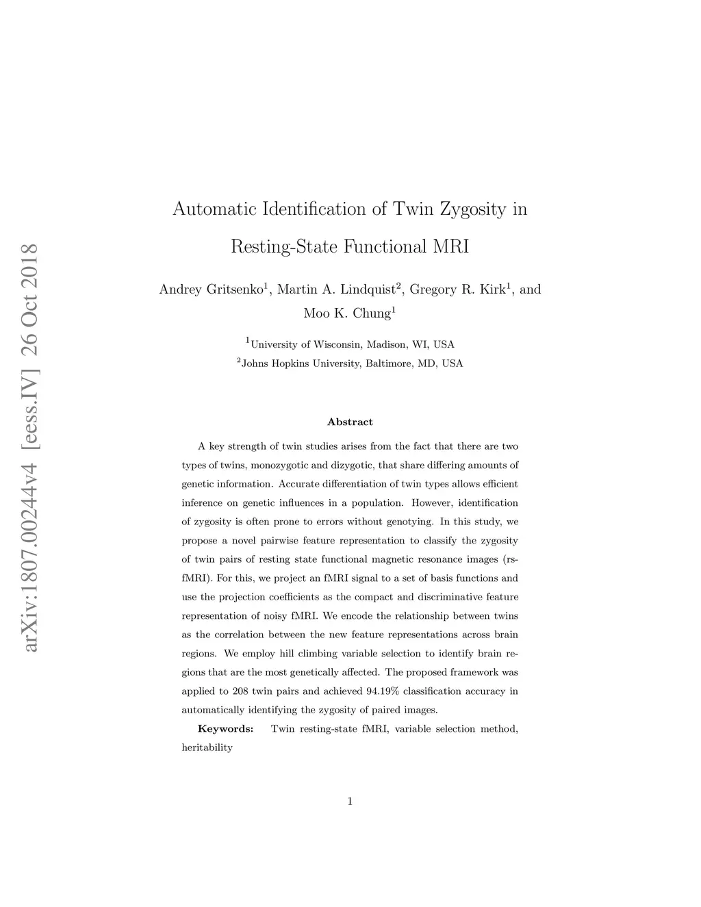 Automatic Identification of Twin Zygosity in Resting-State Functional