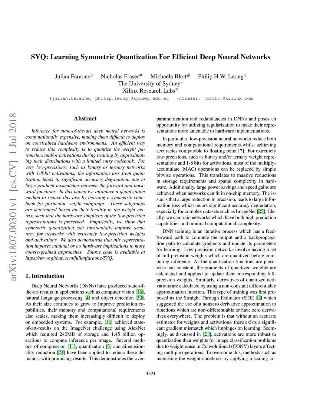 SYQ: Learning Symmetric Quantization For Efficient Deep Neural Networks