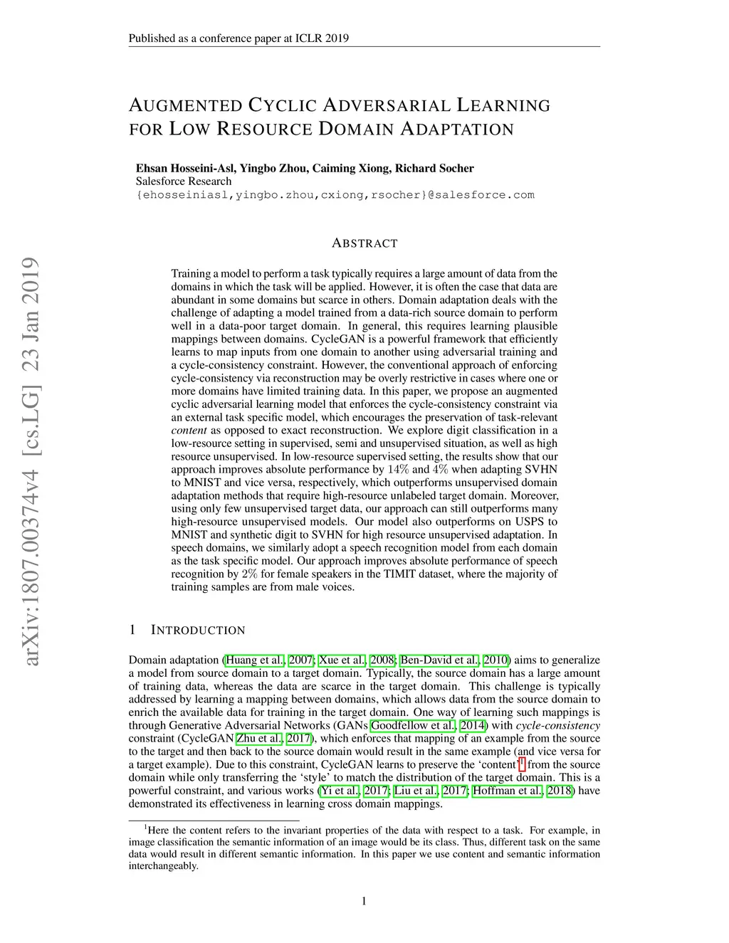 Augmented Cyclic Adversarial Learning for Low Resource Domain Adaptation