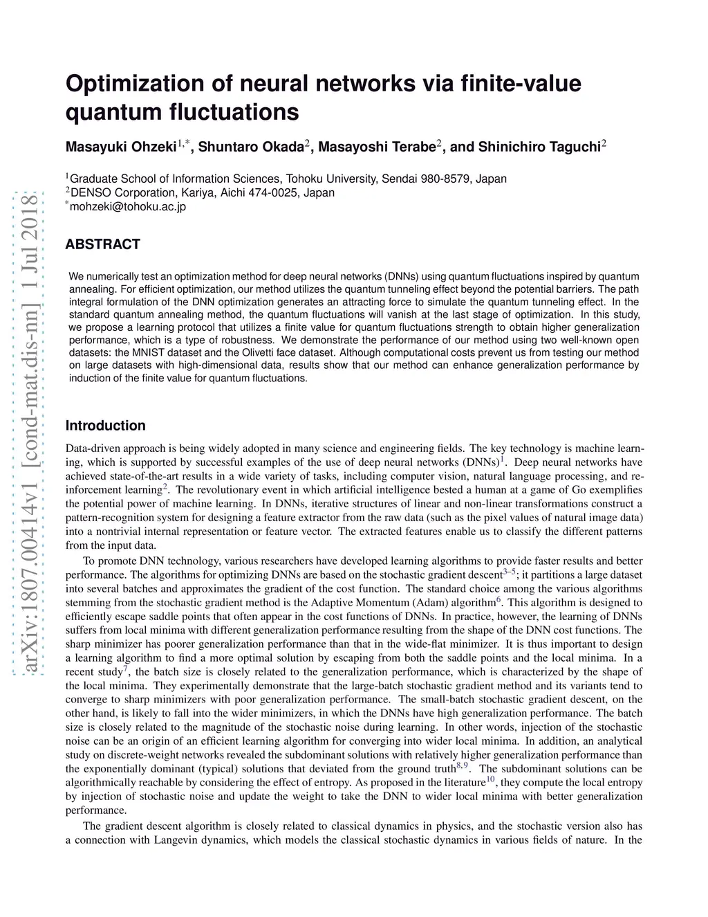 We numerically test an optimization method for deep neural networks (DNNs) using quantum fluctuations inspired by quantum annealing. For efficient optimization, our method utilizes the quantum tunneling effect beyond the potential barriers. The path integral formulation of the DNN optimization generates an attracting force to simulate the quantum tunneling effect. In the standard quantum annealing method, the quantum fluctuations will vanish at the last stage of optimization. In this study, we propose a learning protocol that utilizes a finite value for quantum fluctuations strength to obtain higher generalization performance, which is a type of robustness. We demonstrate the performance of our method using two well-known open datasets: the MNIST dataset and the Olivetti face dataset. Although computational costs prevent us from testing our method on large datasets with high-dimensional data, results show that our method can enhance generalization performance by induction of the finite value for quantum fluctuations.