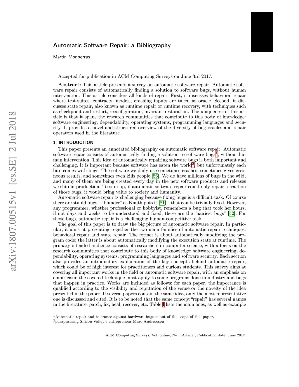 Automatic Software Repair: a Bibliography