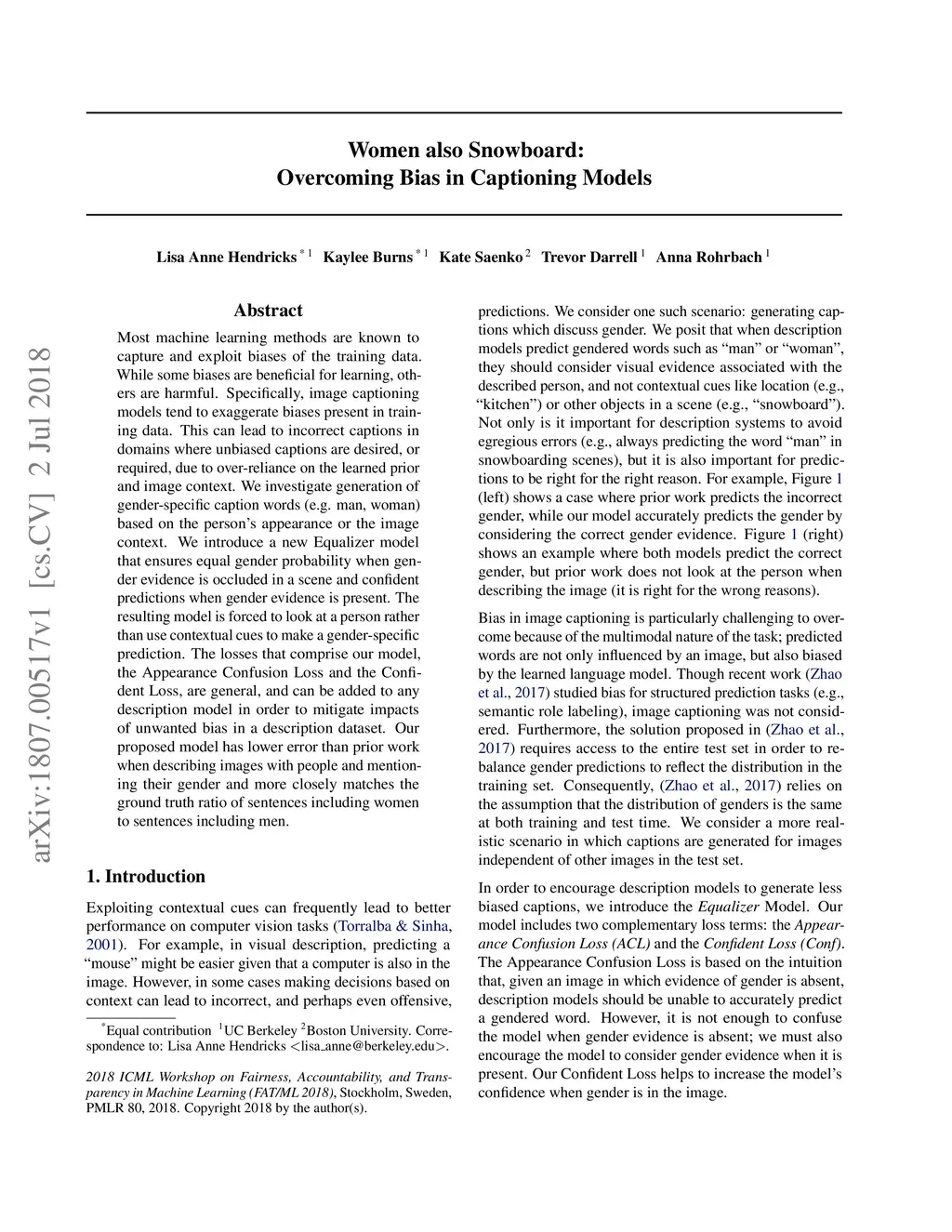 Women also Snowboard: Overcoming Bias in Captioning Models (Extended