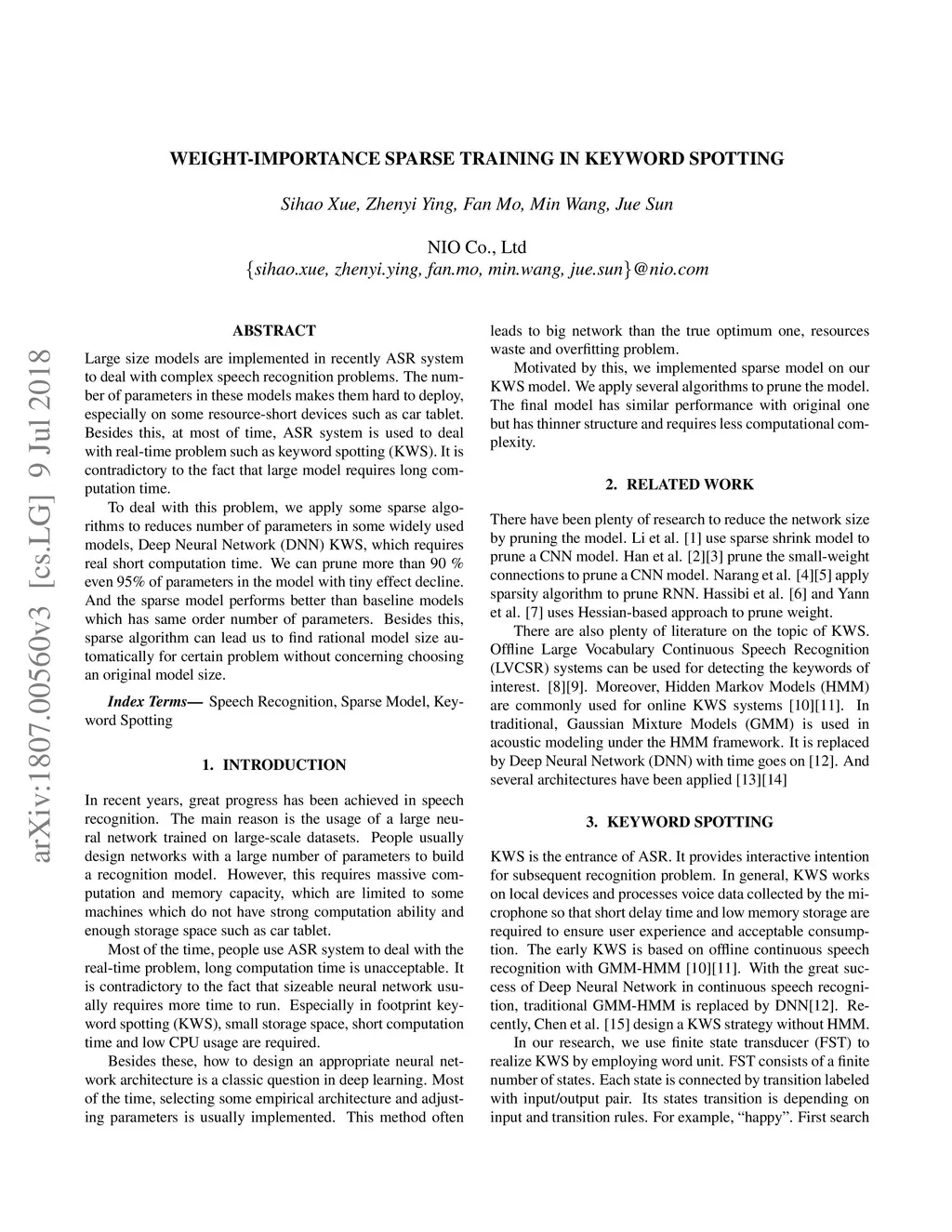 Weight-importance sparse training in keyword spotting