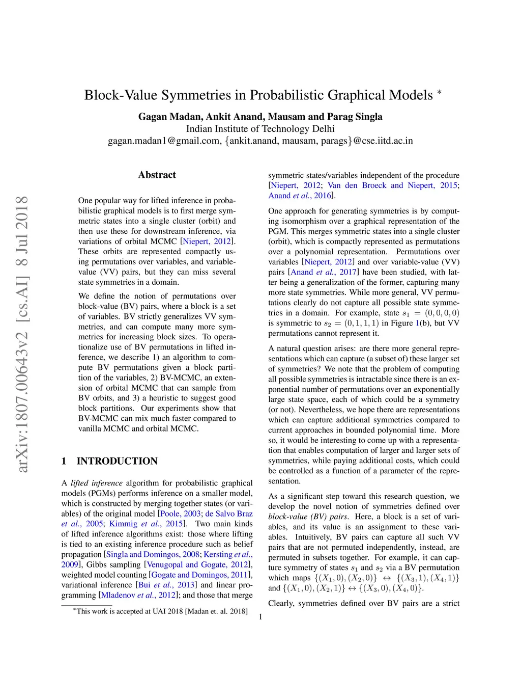 One popular way for lifted inference in probabilistic graphical models is to first merge symmetric states into a single cluster (orbit) and then use these for downstream inference, via variations of orbital MCMC [Niepert, 2012]. These orbits are represented compactly using permutations over variables, and variable-value (VV) pairs, but they can miss several state symmetries in a domain. We define the notion of permutations over block-value (BV) pairs, where a block is a set of variables. BV strictly generalizes VV symmetries, and can compute many more symmetries for increasing block sizes. To operationalize use of BV permutations in lifted inference, we describe 1) an algorithm to compute BV permutations given a block partition of the variables, 2) BV-MCMC, an extension of orbital MCMC that can sample from BV orbits, and 3) a heuristic to suggest good block partitions. Our experiments show that BV-MCMC can mix much faster compared to vanilla MCMC and orbital MCMC.