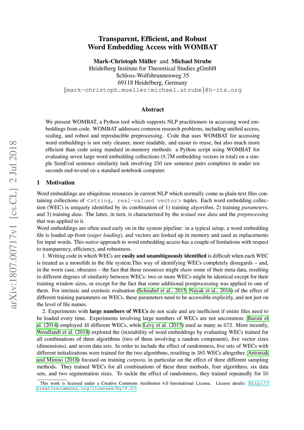Transparent, Efficient, and Robust Word Embedding Access with WOMBAT