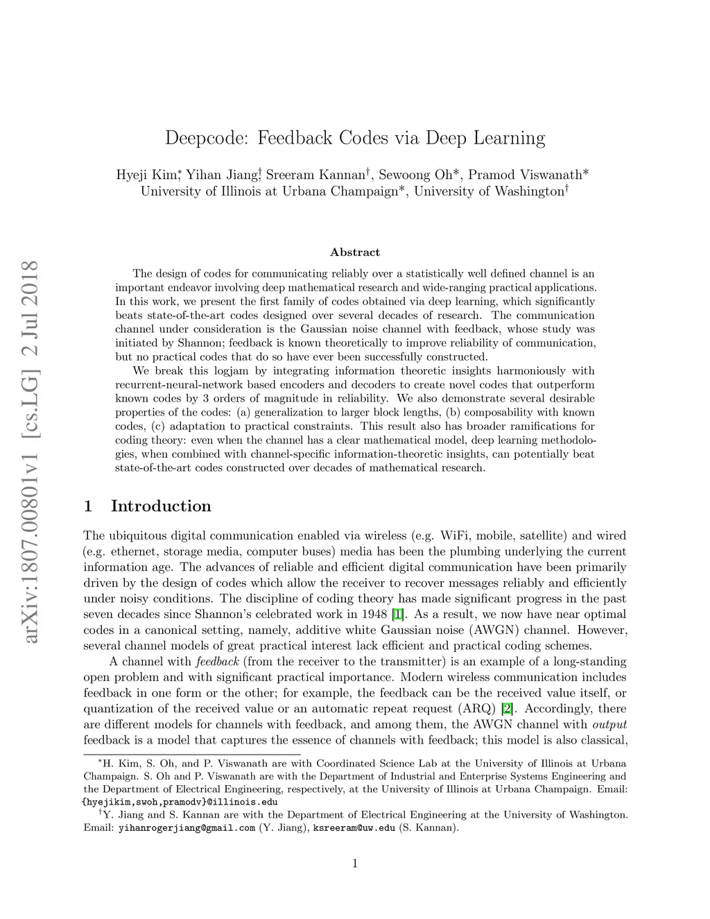 The design of codes for communicating reliably over a statistically well defined channel is an important endeavor involving deep mathematical research and wide-ranging practical applications. In this work, we present the first family of codes obtained via deep learning, which significantly beats state-of-the-art codes designed over several decades of research. The communication channel under consideration is the Gaussian noise channel with feedback, whose study was initiated by Shannon; feedback is known theoretically to improve reliability of communication, but no practical codes that do so have ever been successfully constructed. We break this logjam by integrating information theoretic insights harmoniously with recurrent-neural-network based encoders and decoders to create novel codes that outperform known codes by 3 orders of magnitude in reliability. We also demonstrate several desirable properties of the codes: (a) generalization to larger block lengths, (b) composability with known codes, (c) adaptation to practical constraints. This result also has broader ramifications for coding theory: even when the channel has a clear mathematical model, deep learning methodologies, when combined with channel-specific information-theoretic insights, can potentially beat state-of-the-art codes constructed over decades of mathematical research.