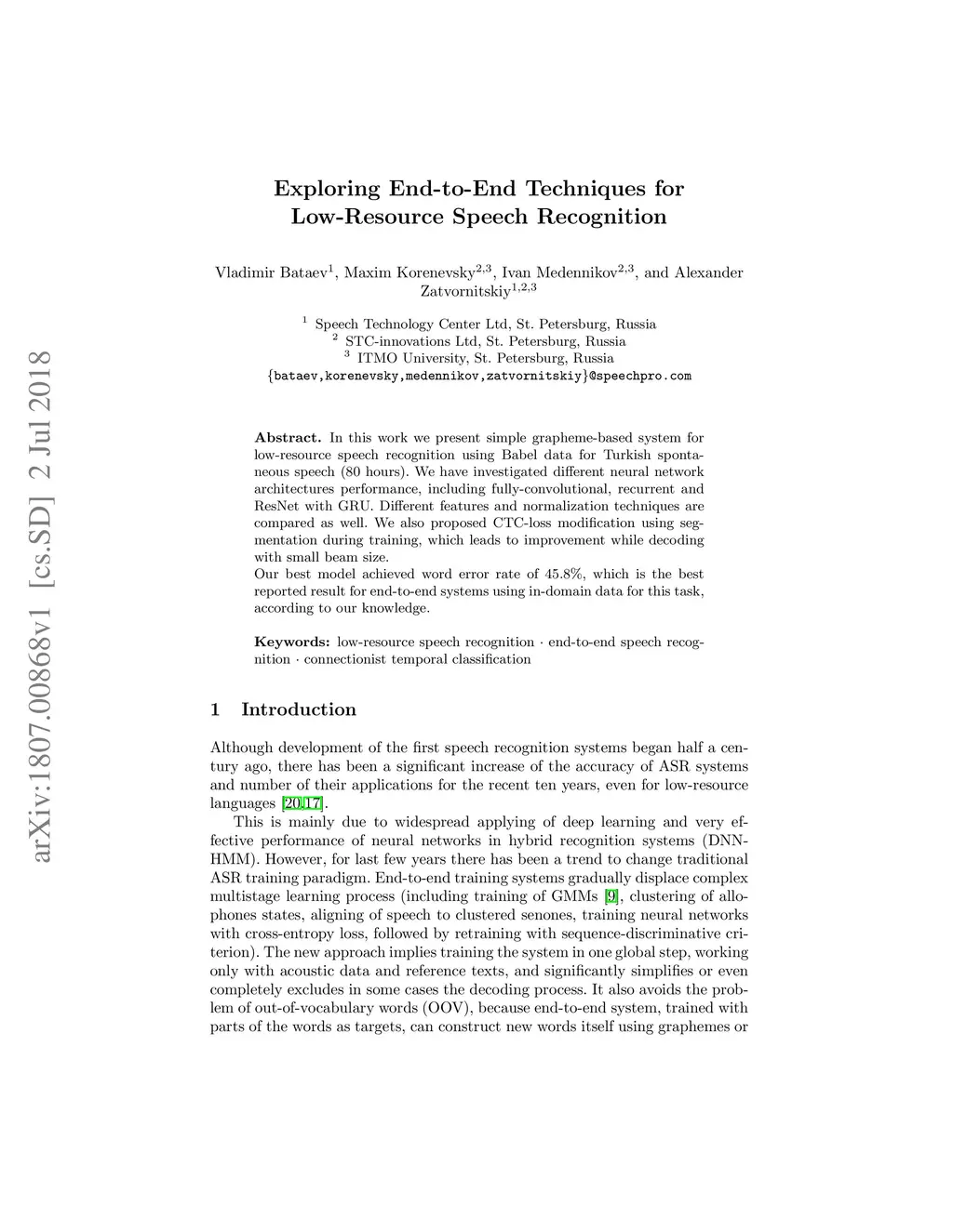 Exploring End-to-End Techniques for Low-Resource Speech Recognition