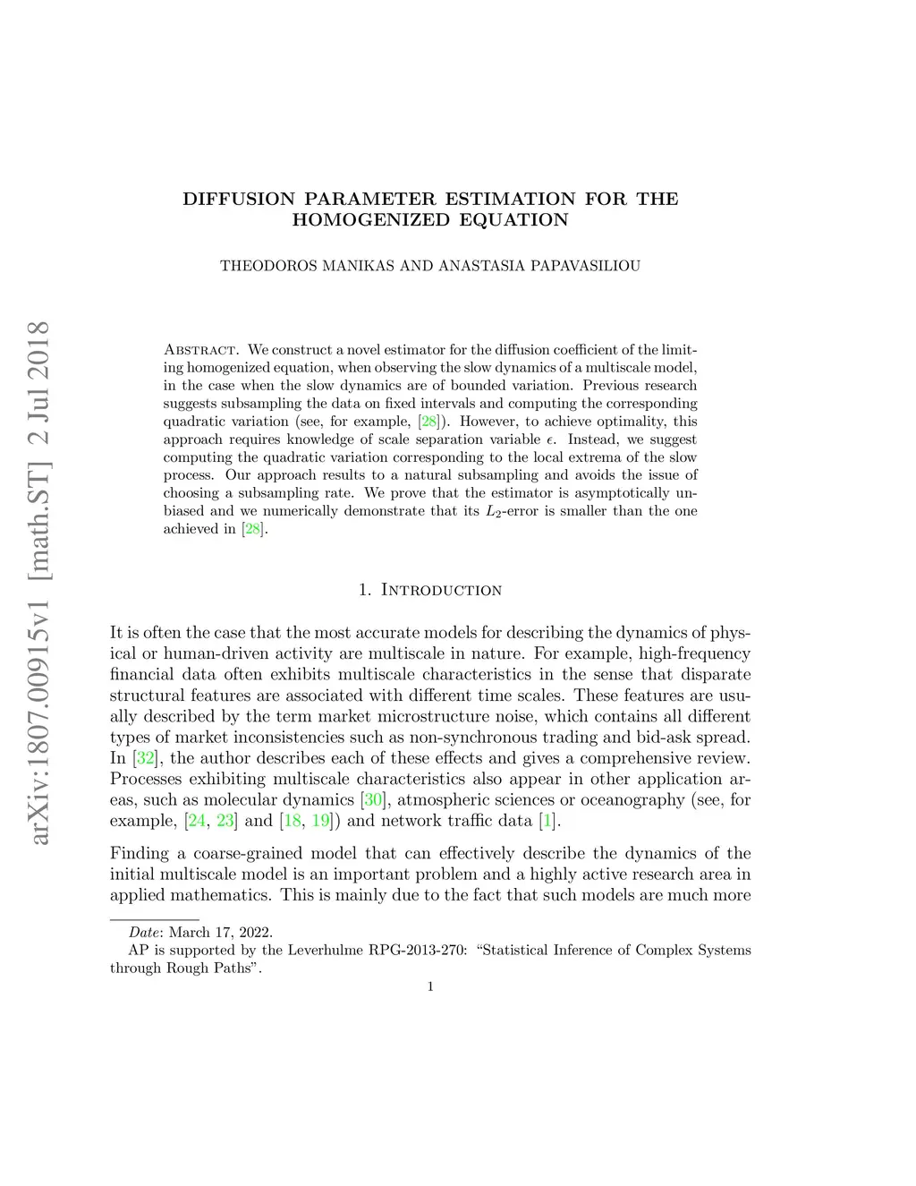 We construct a novel estimator for the diffusion coefficient of the limiting homogenized equation, when observing the slow dynamics of a multiscale model, in the case when the slow dynamics are of bounded variation. Previous research suggests subsampling the data on fixed intervals and computing the corresponding quadratic variation. However, to achieve optimality, this approach requires knowledge of scale separation variable . Instead, we suggest computing the quadratic variation corresponding to the local extrema of the slow process. Our approach results to a natural subsampling and avoids the issue of choosing a subsampling rate. We prove that the estimator is asymptotically unbiased and we numerically demonstrate that its -error is of order .