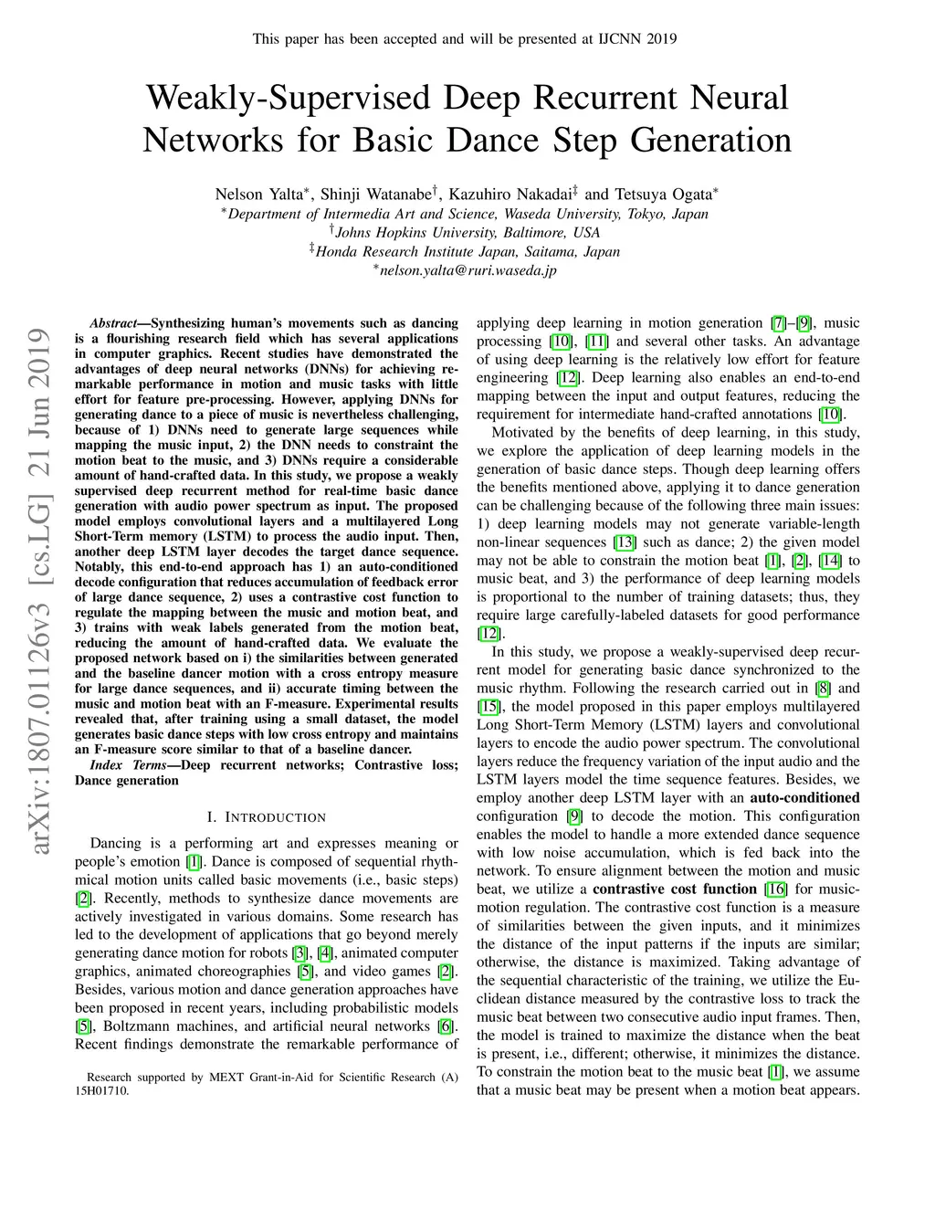 Weakly Supervised Deep Recurrent Neural Networks for Basic Dance Step