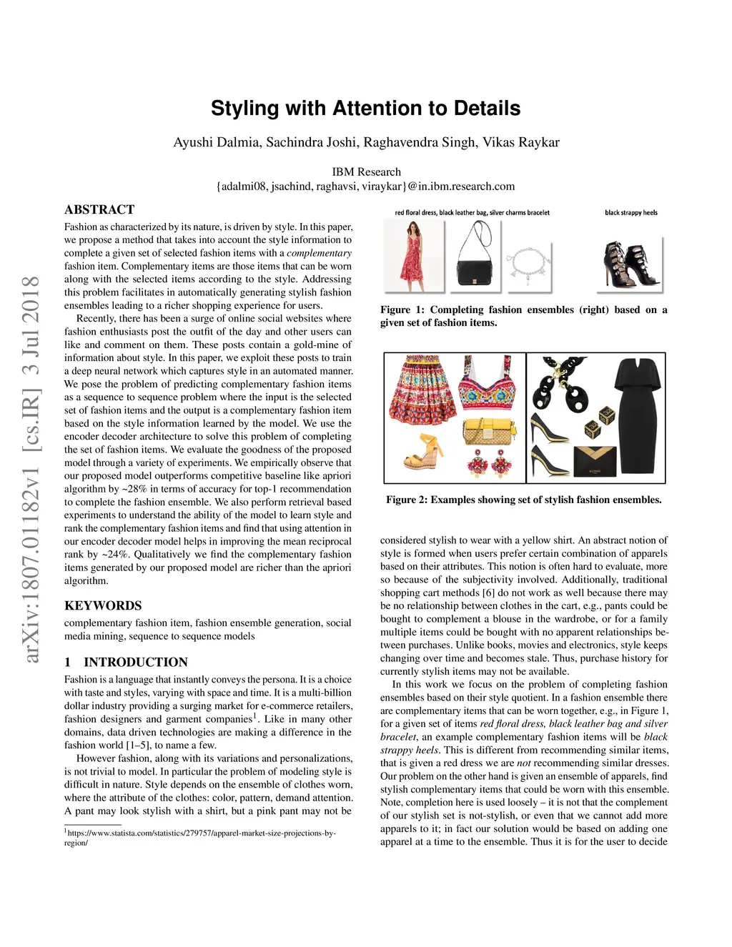 Fashion as characterized by its nature, is driven by style. In this paper, we propose a method that takes into account the style information to complete a given set of selected fashion items with a complementary fashion item. Complementary items are those items that can be worn along with the selected items according to the style. Addressing this problem facilitates in automatically generating stylish fashion ensembles leading to a richer shopping experience for users. Recently, there has been a surge of online social websites where fashion enthusiasts post the outfit of the day and other users can like and comment on them. These posts contain a gold-mine of information about style. In this paper, we exploit these posts to train a deep neural network which captures style in an automated manner. We pose the problem of predicting complementary fashion items as a sequence to sequence problem where the input is the selected set of fashion items and the output is a complementary fashion item based on the style information learned by the model. We use the encoder decoder architecture to solve this problem of completing the set of fashion items. We evaluate the goodness of the proposed model through a variety of experiments. We empirically observe that our proposed model outperforms competitive baseline like apriori algorithm by ~28 in terms of accuracy for top-1 recommendation to complete the fashion ensemble. We also perform retrieval based experiments to understand the ability of the model to learn style and rank the complementary fashion items and find that using attention in our encoder decoder model helps in improving the mean reciprocal rank by ~24. Qualitatively we find the complementary fashion items generated by our proposed model are richer than the apriori algorithm.