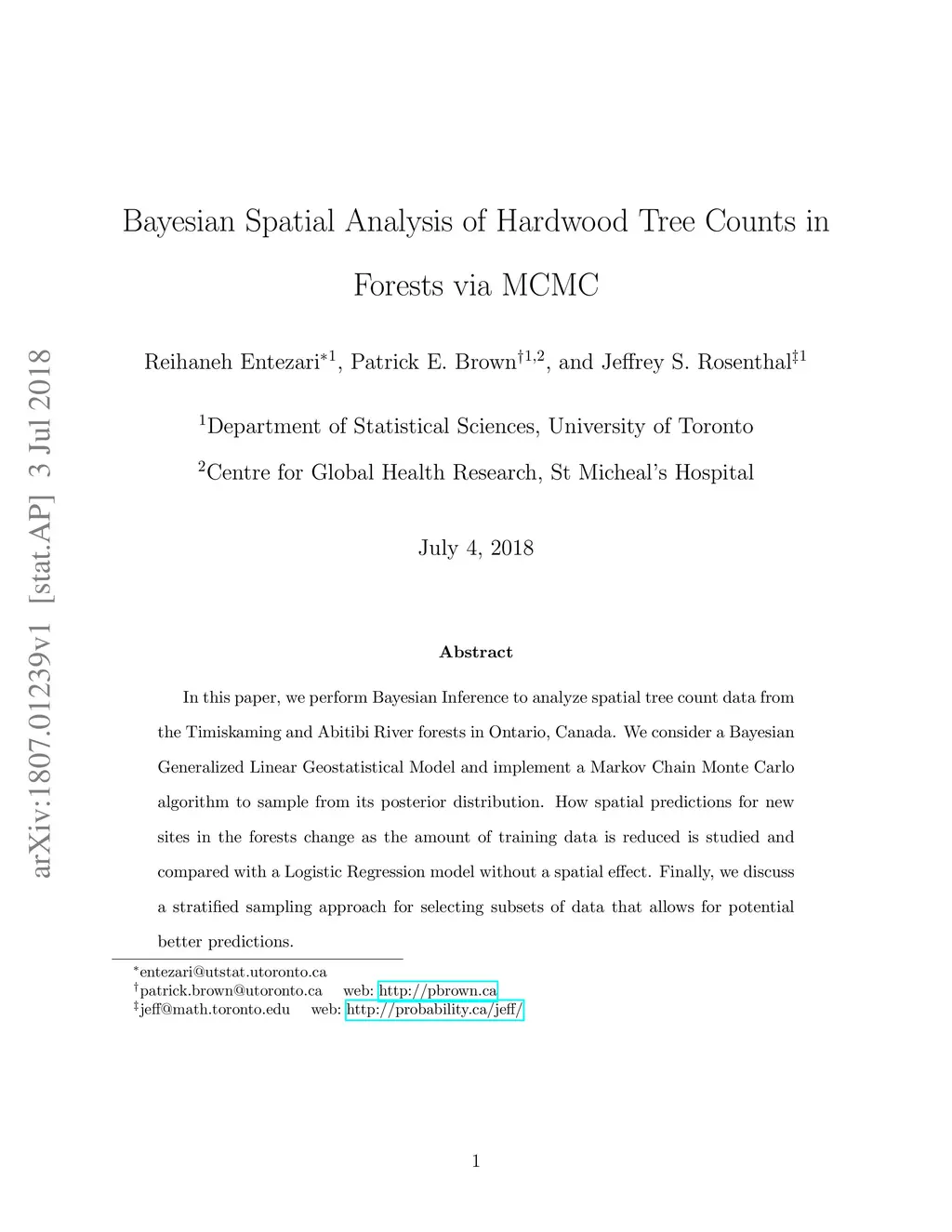 Bayesian Spatial Analysis of Hardwood Tree Counts in Forests via MCMC