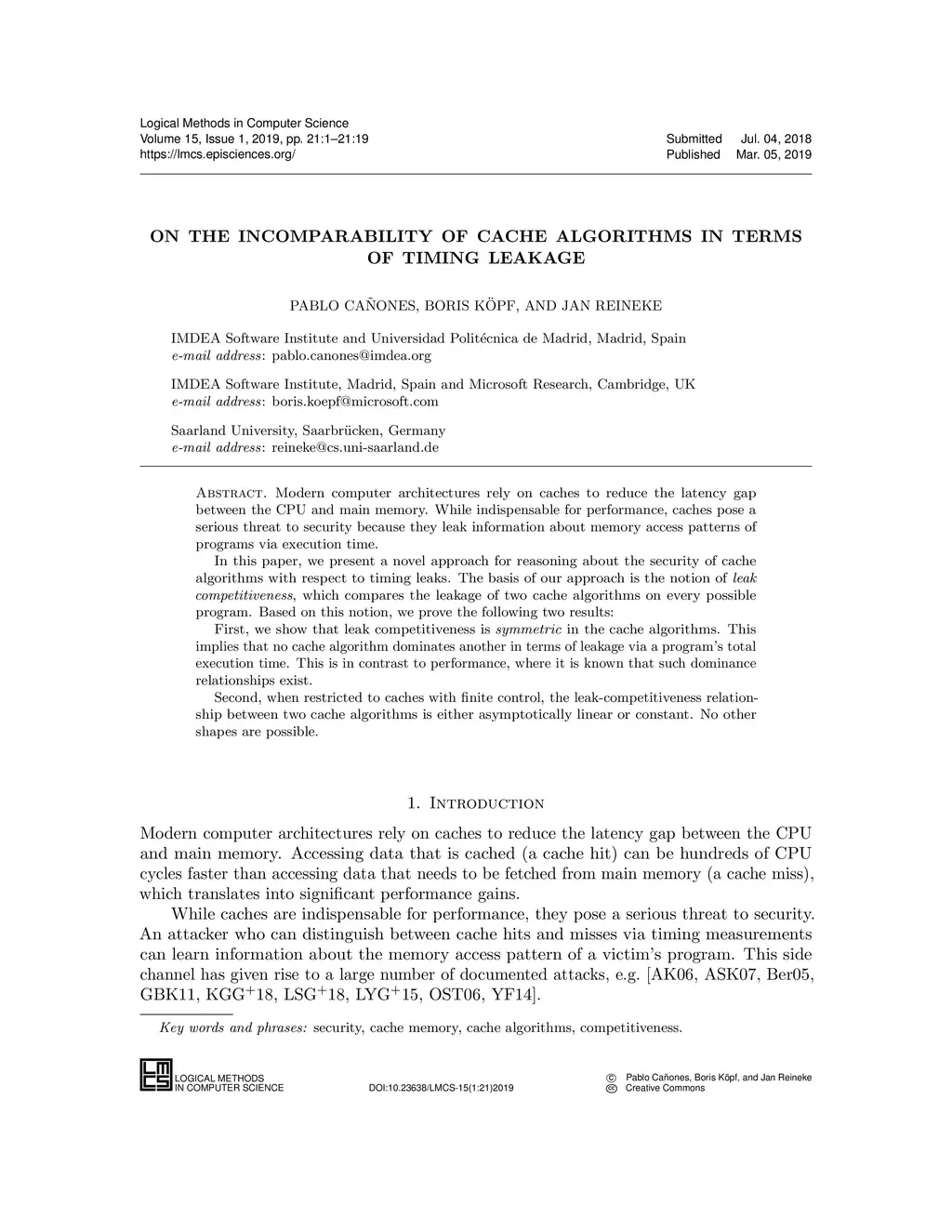 On the Incomparability of Cache Algorithms in Terms of Timing Leakage