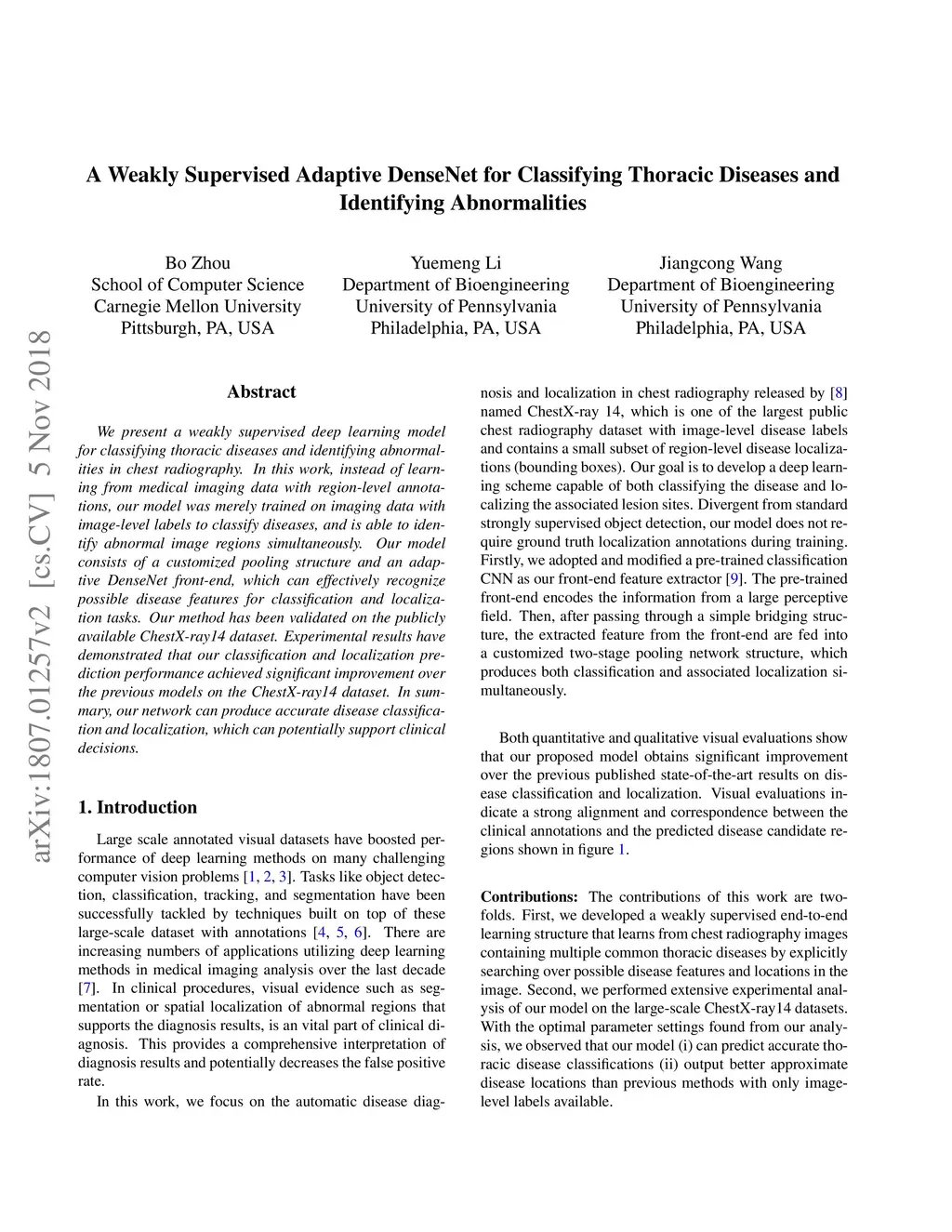 A Weakly Supervised Adaptive DenseNet for Classifying Thoracic Diseases