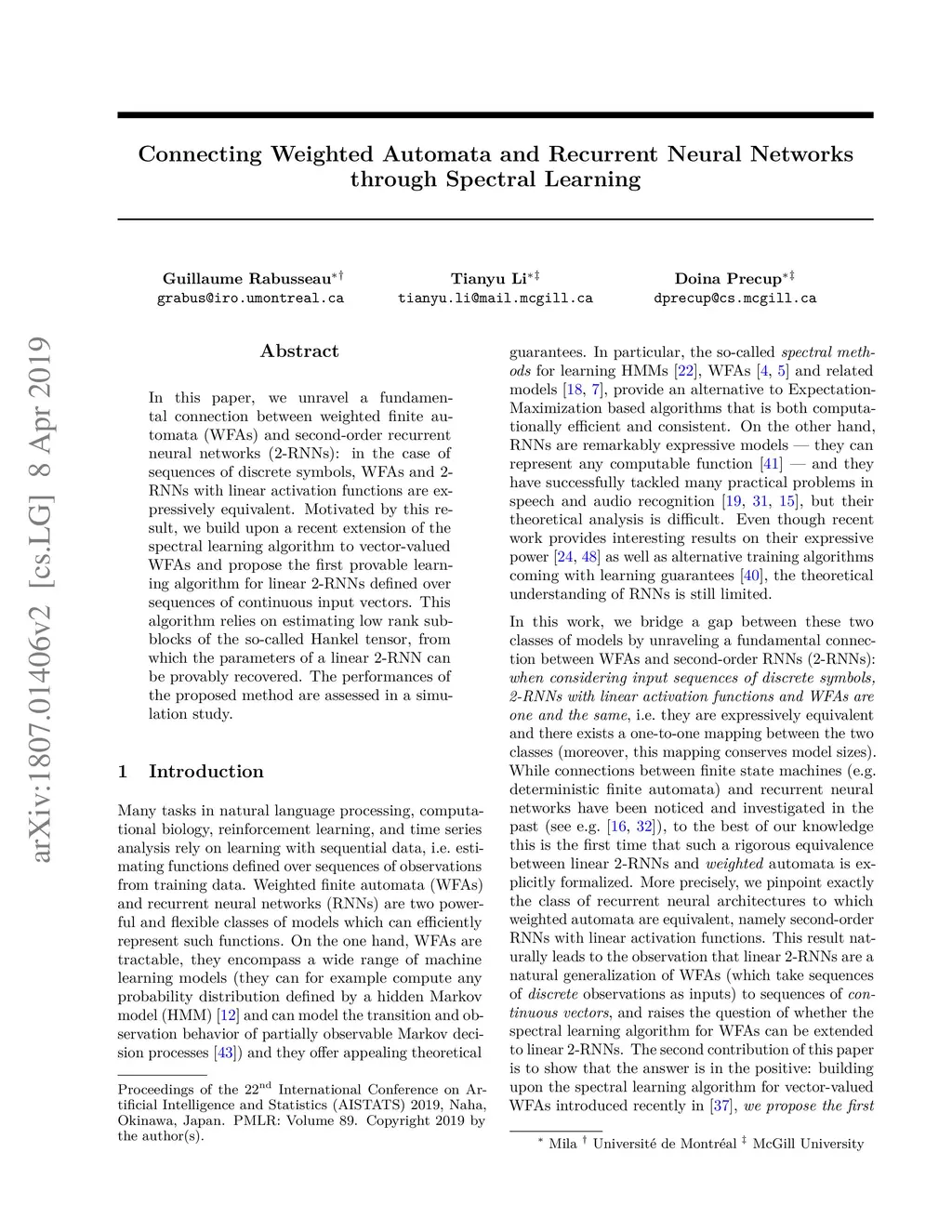Spectral Learning