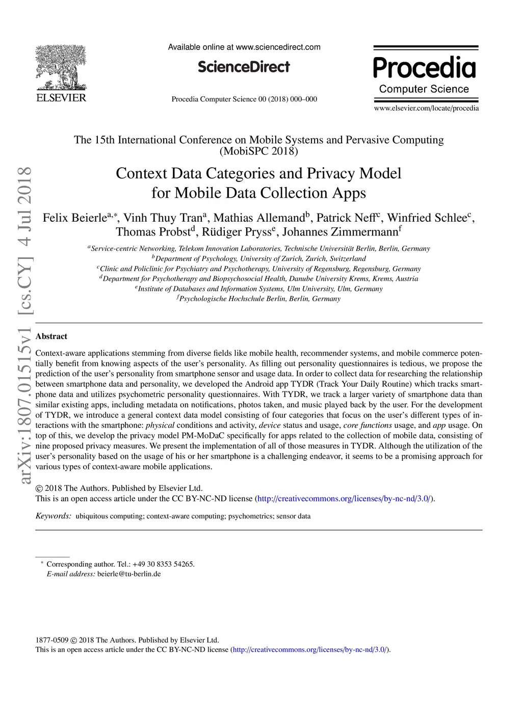 Context Data Categories and Privacy Model for Mobile Data Collection