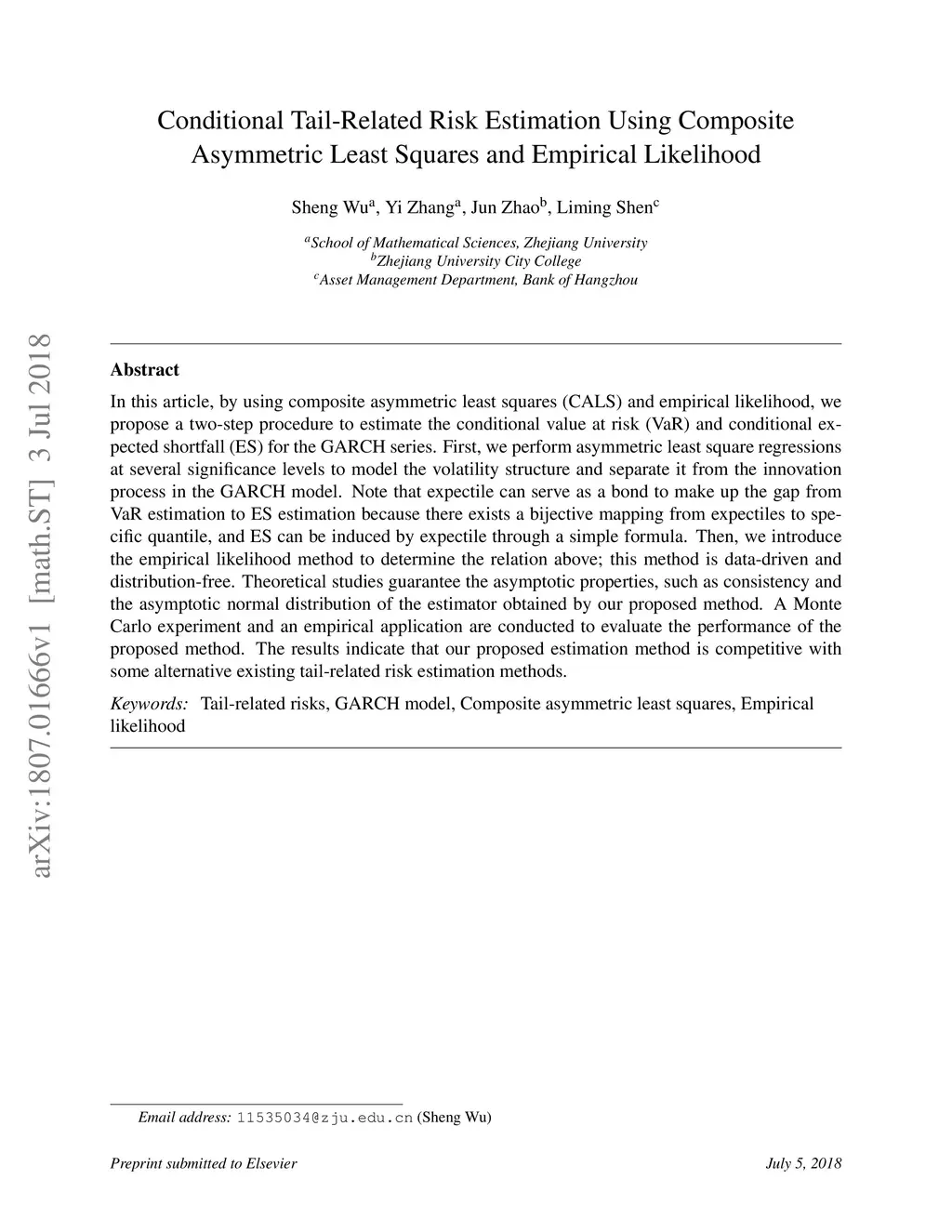 In this article, by using composite asymmetric least squares (CALS) and empirical likelihood, we propose a two-step procedure to estimate the conditional value at risk (VaR) and conditional expected shortfall (ES) for the GARCH series. First, we perform asymmetric least square regressions at several significance levels to model the volatility structure and separate it from the innovation process in the GARCH model. Note that expectile can serve as a bond to make up the gap from VaR estimation to ES estimation because there exists a bijective mapping from expectiles to specific quantile, and ES can be induced by expectile through a simple formula. Then, we introduce the empirical likelihood method to determine the relation above; this method is data-driven and distribution-free. Theoretical studies guarantee the asymptotic properties, such as consistency and the asymptotic normal distribution of the estimator obtained by our proposed method. A Monte Carlo experiment and an empirical application are conducted to evaluate the performance of the proposed method. The results indicate that our proposed estimation method is competitive with some alternative existing tail-related risk estimation methods.