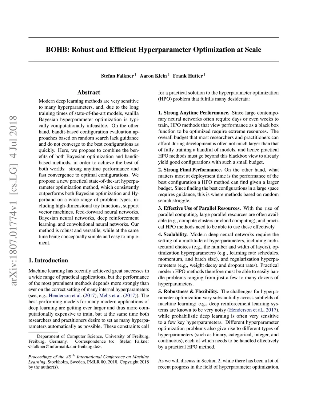 BOHB: Robust and Efficient Hyperparameter Optimization at Scale